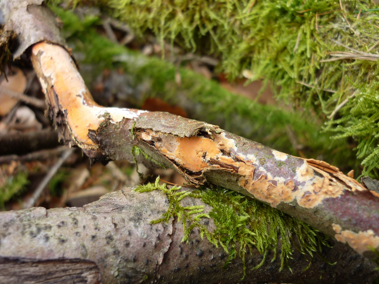 Dann sehe ich noch Schichtpilze (Stereum) auf Bild 1 und 3, vielleicht Stereum hirsutum.