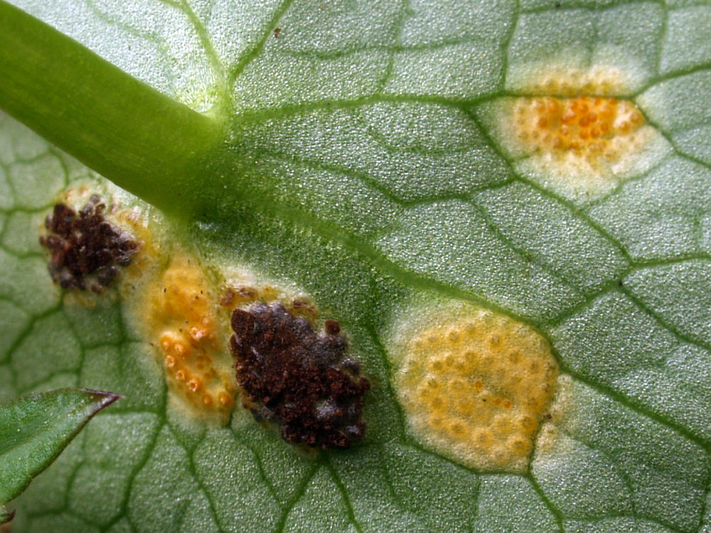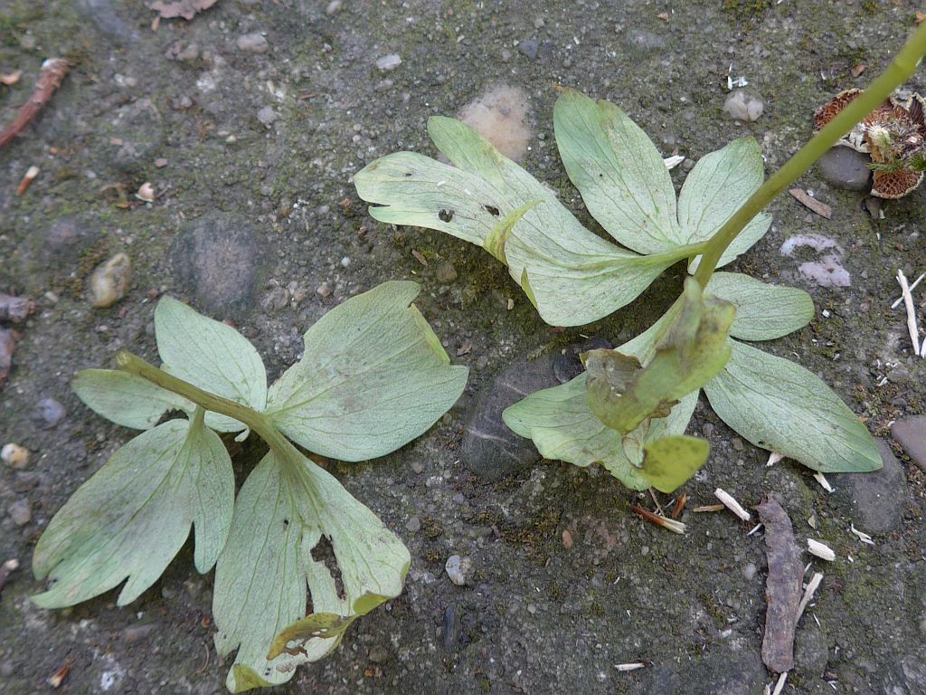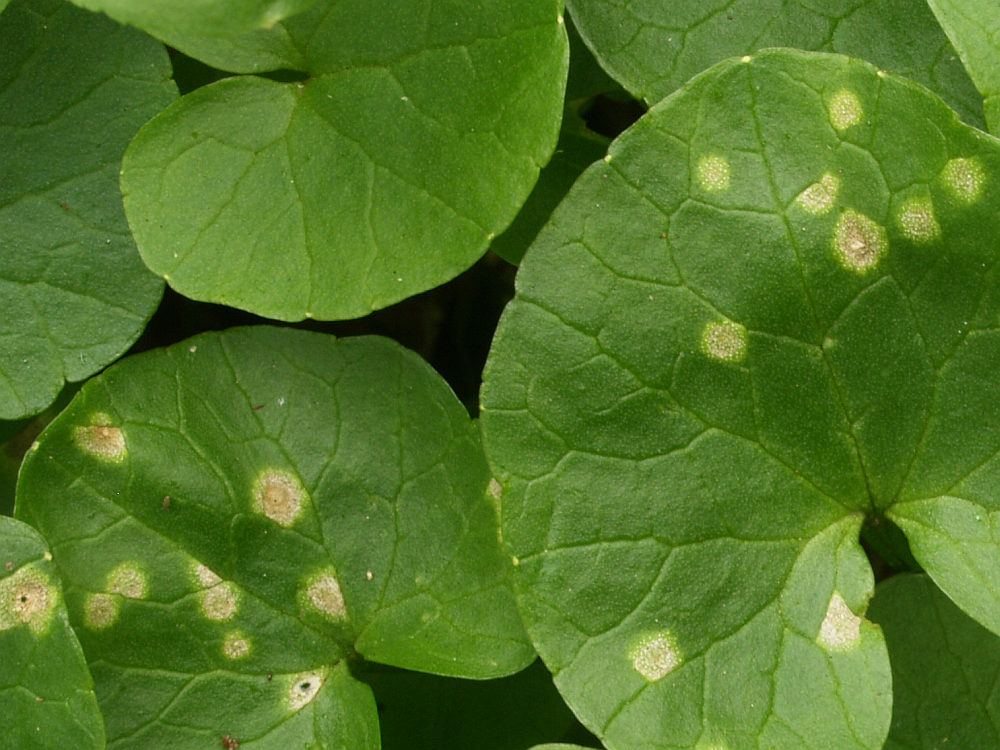 Eine Peronospora (Falscher Mehltau) an Lerchenspornblättern. Leider habe ich nicht auf die Lerchenspornart geachtet. Das wäre für die Bestimmung des Mehltau sehr wichtig gewesen.