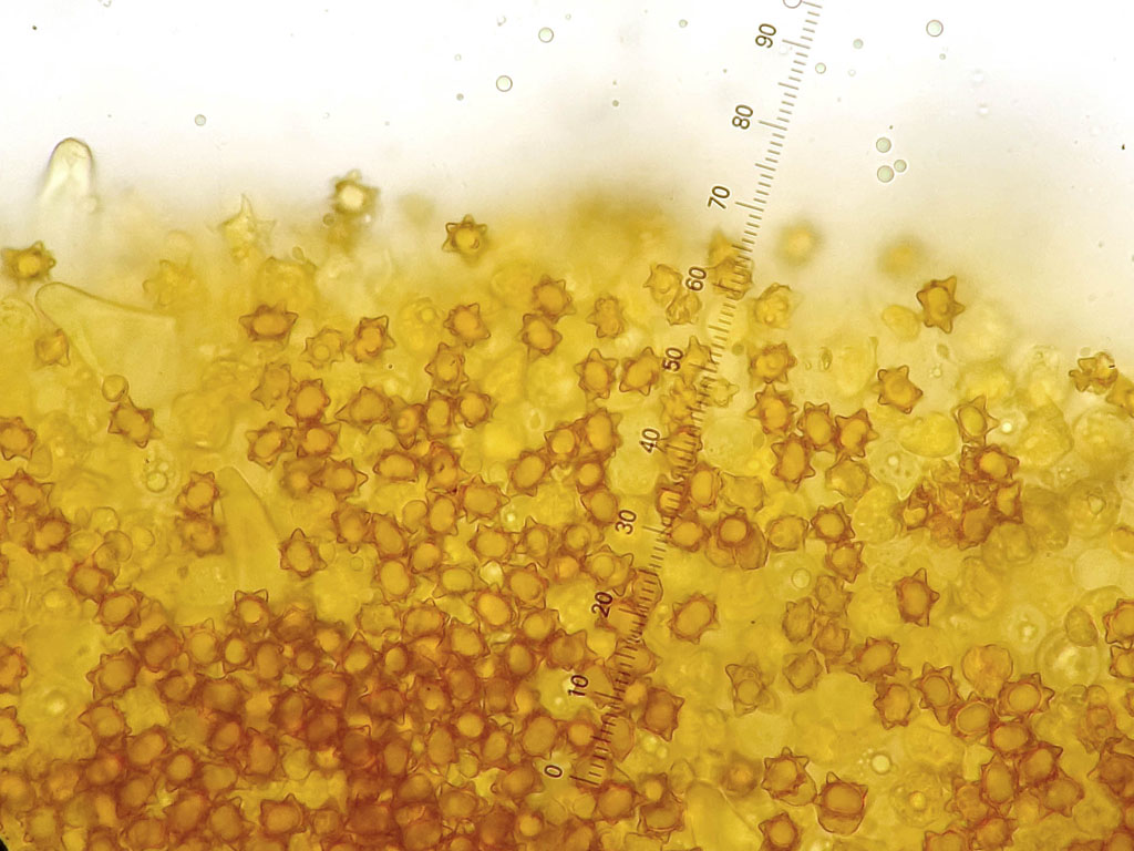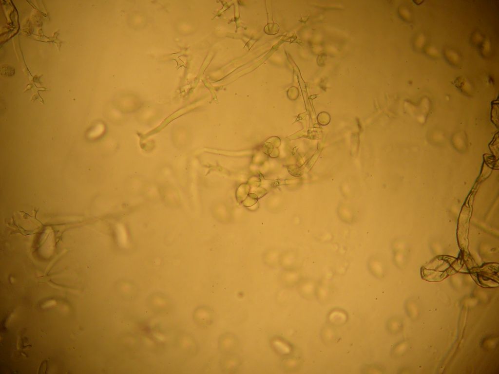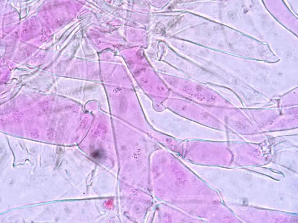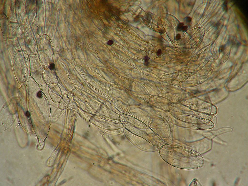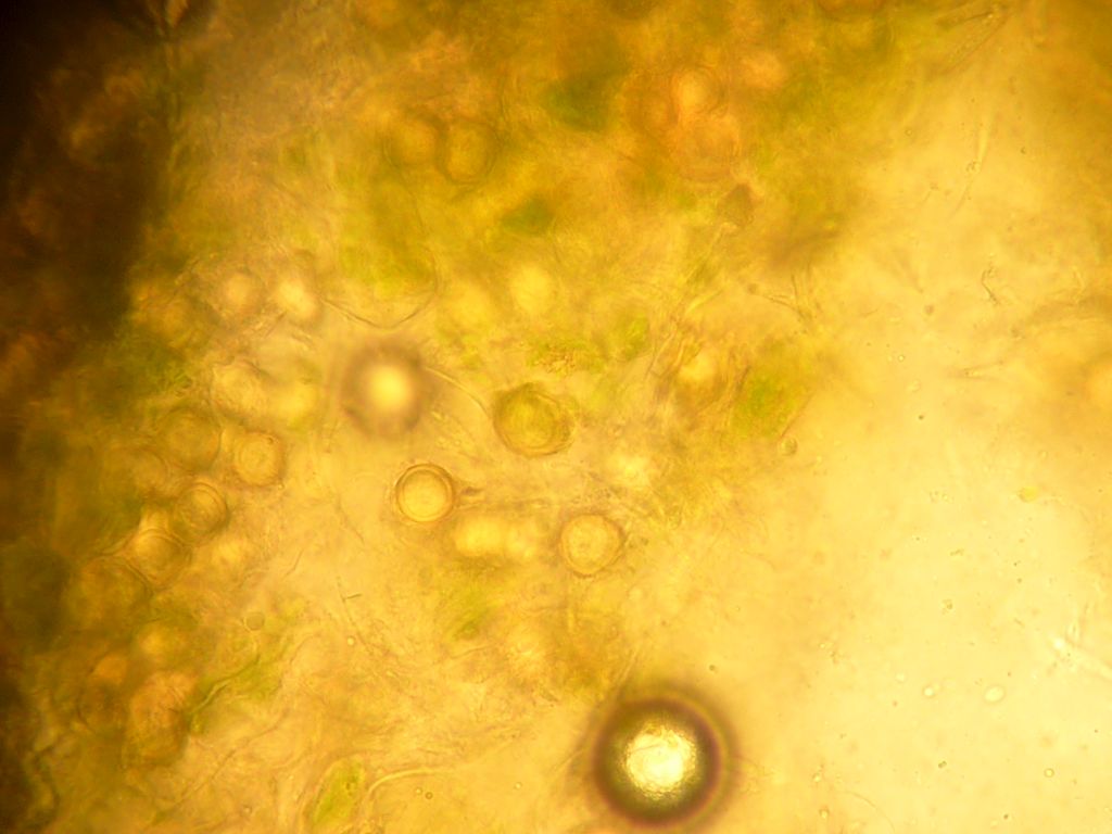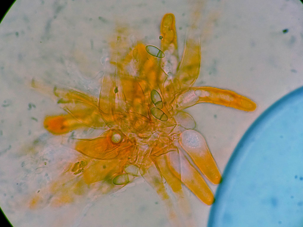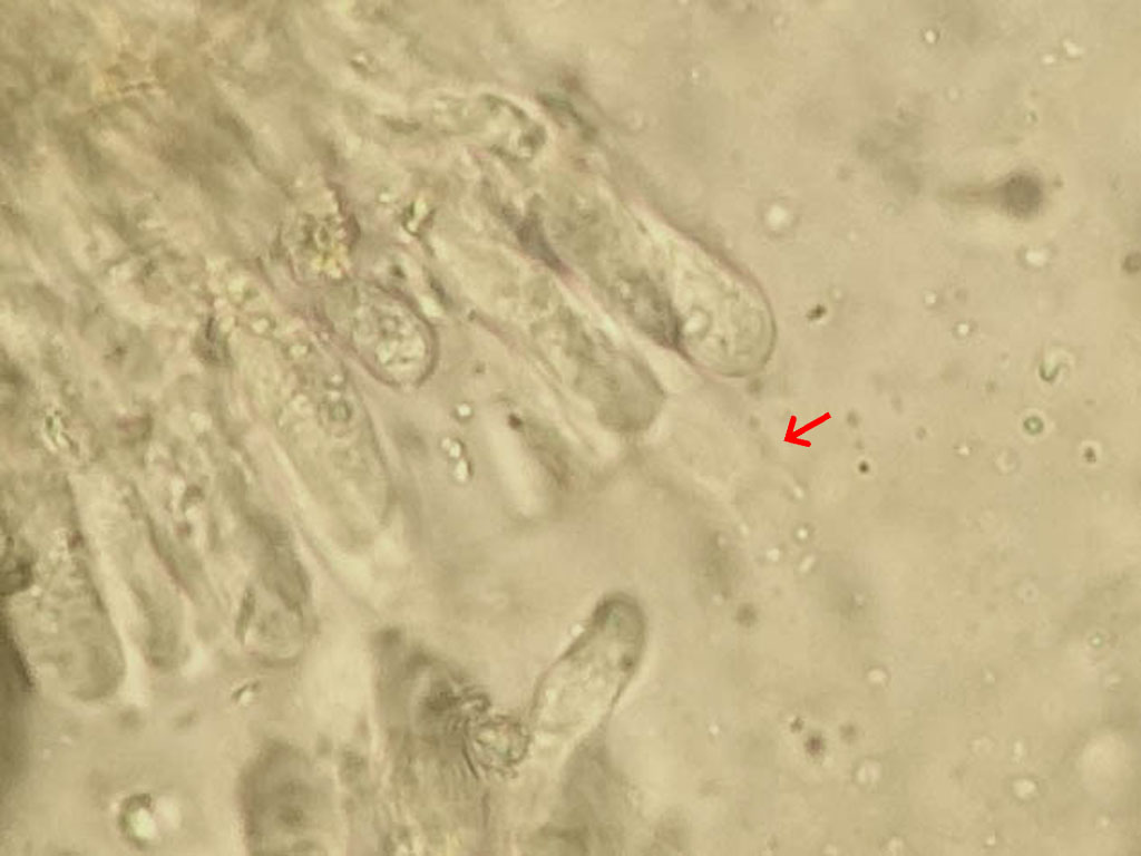 Ich muss auch zu meiner Ehrenrettung sagen, dass ich auch nicht die nötige Ruhe und noch wichtiger die nötige Literatur dabei hatte. Zudem waren beide schon bei der Untersuchung schon ziemlich hinüber. Eine Zystide konnte ich noch fotografieren.