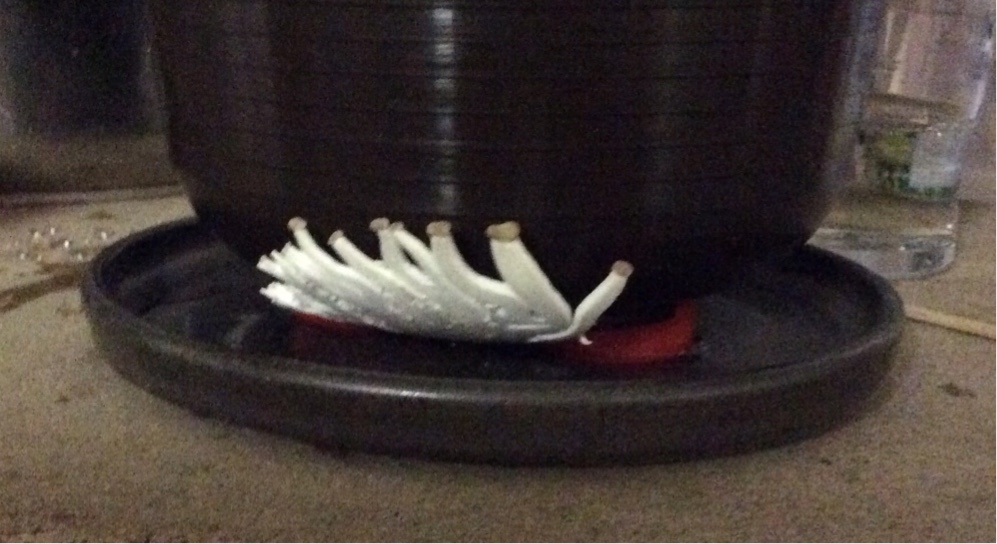 Nachdem ich alles wie auf der Packung angegeben gemacht hatte, und alles komplett "durchgemycelt" war (das Mycel wuchs sogar unten aus dem Topf und ist wattig, weiß, hoch und sehr dicht. Deshalb habe ich zum Gießen auch Löcher reingestochen), zeigen sich jetzt seit ein paar Tagen die ersten Primordien. Ich nenne sie einfach "Austernknöpfchen" und finde sie total süß. ==10
