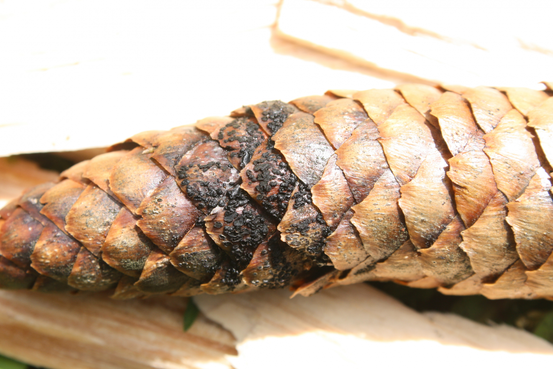Im Waldviertel hab ich an einer feuchten Stelle Fichtenzapfen mit schwarzen Flecken gefunden - könnte das Phragmotrichum chailletii sein?