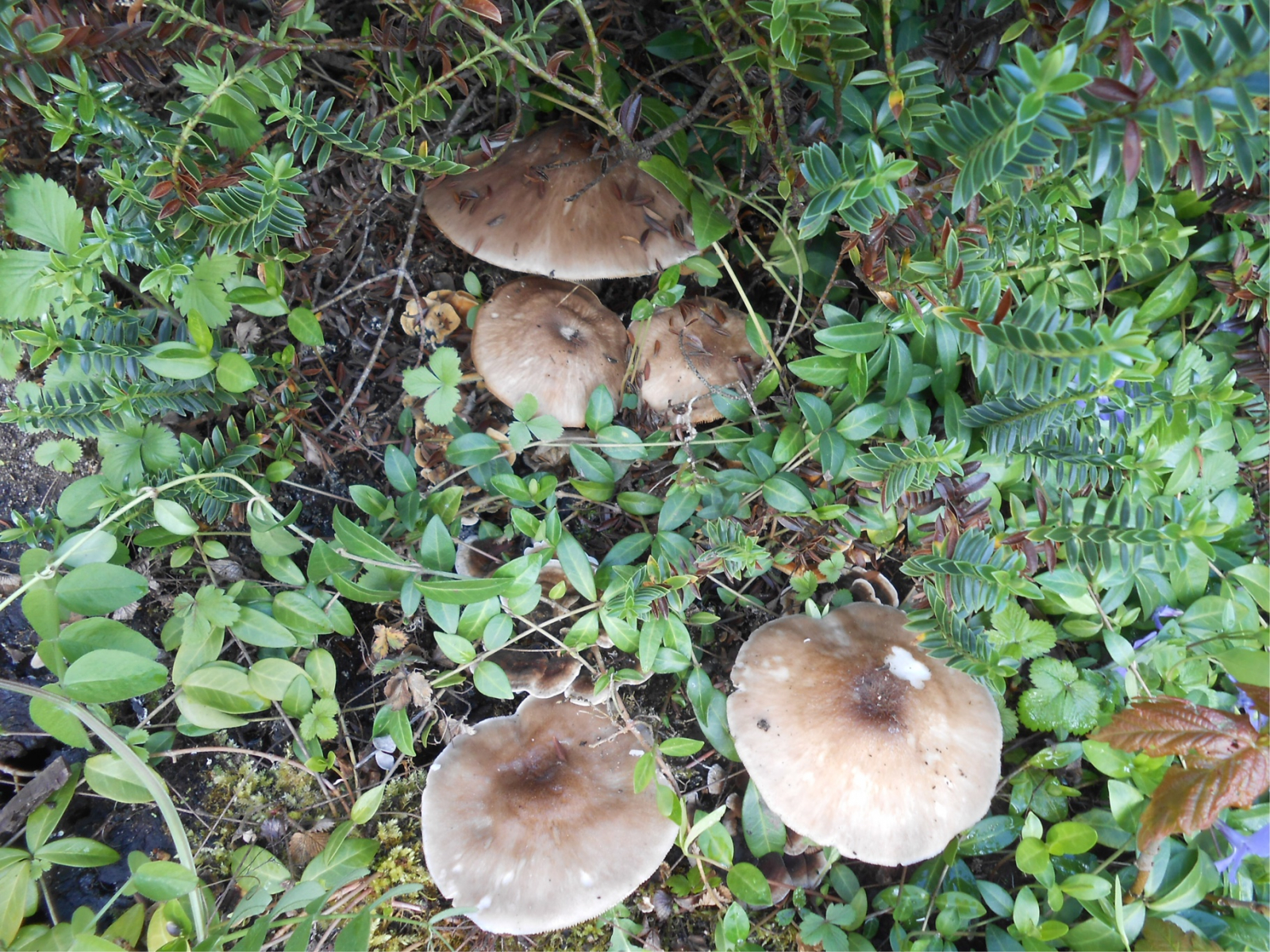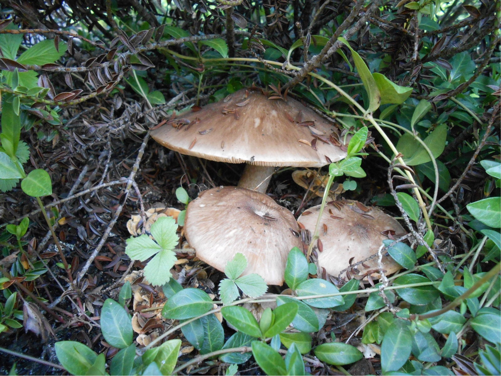 letztes Jahr hatte ich, leider erst nach einer Frostnacht, einige Fotos eines Pilzes aus unserem Garten gepostet, mit ersten Bestimmungsversuchen. Da die Fruchtkörper durch den Frost schon schlabberig und irgendwie zusammengefallen waren, konnte man sie nicht so recht zuordnen.