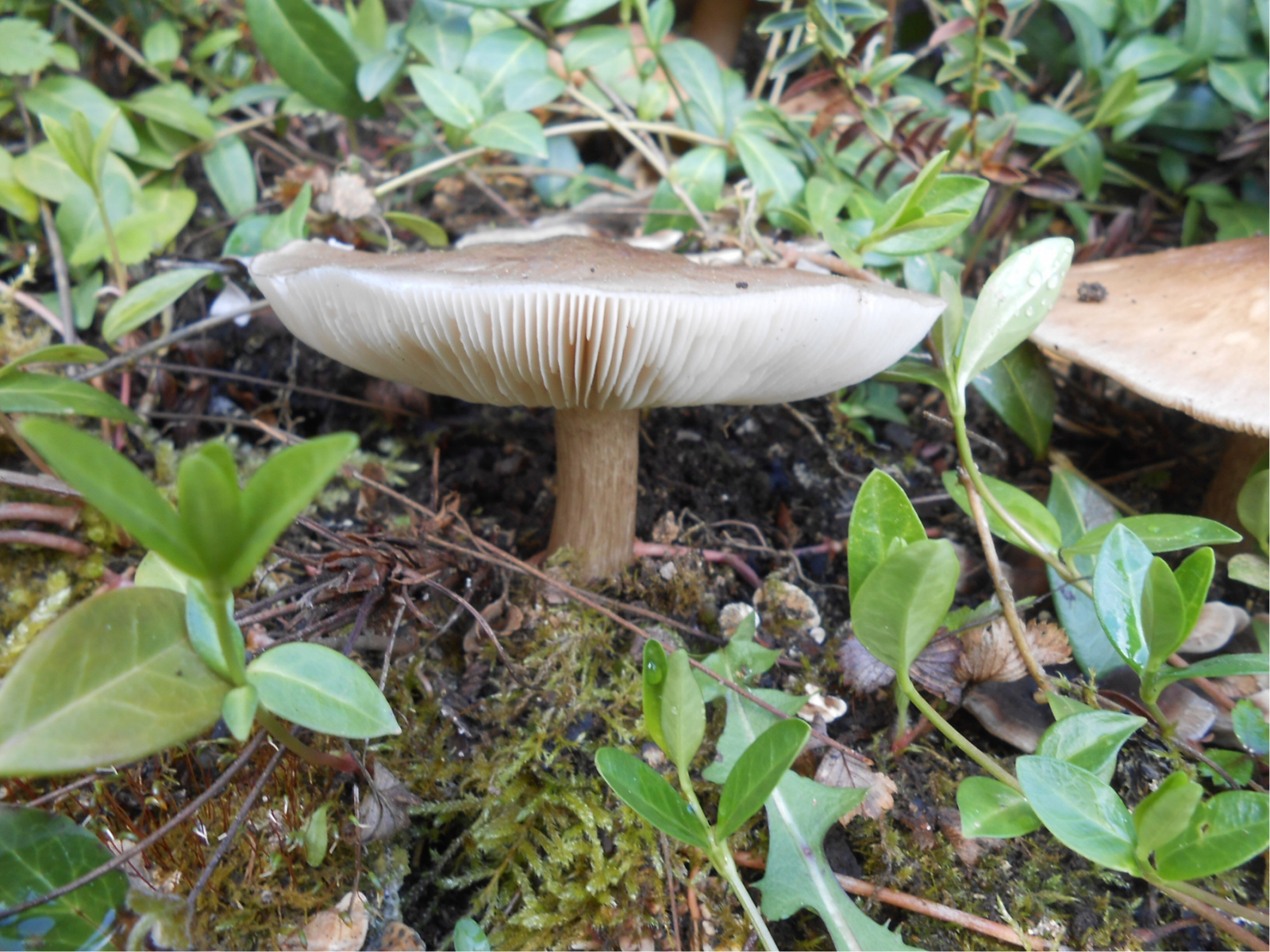 Einige andere Möglichkeiten wären noch ein Büscheliger Faserling, Psathyrella multipedata, hiergegen sprechen allerdings die Stiele und die fehlende Büschelwuchsform, oder der Horngraue Rübling, Rhodocollybia butyracea, gegen den aber m.E. die Lamellen-Anwuchsform spricht.