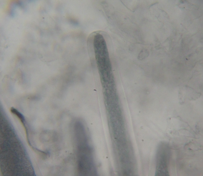 Seten am Perithecienhals braun, zur Basis septiert, bis 60 x3 µ, dickwandig, apikal hyalin.