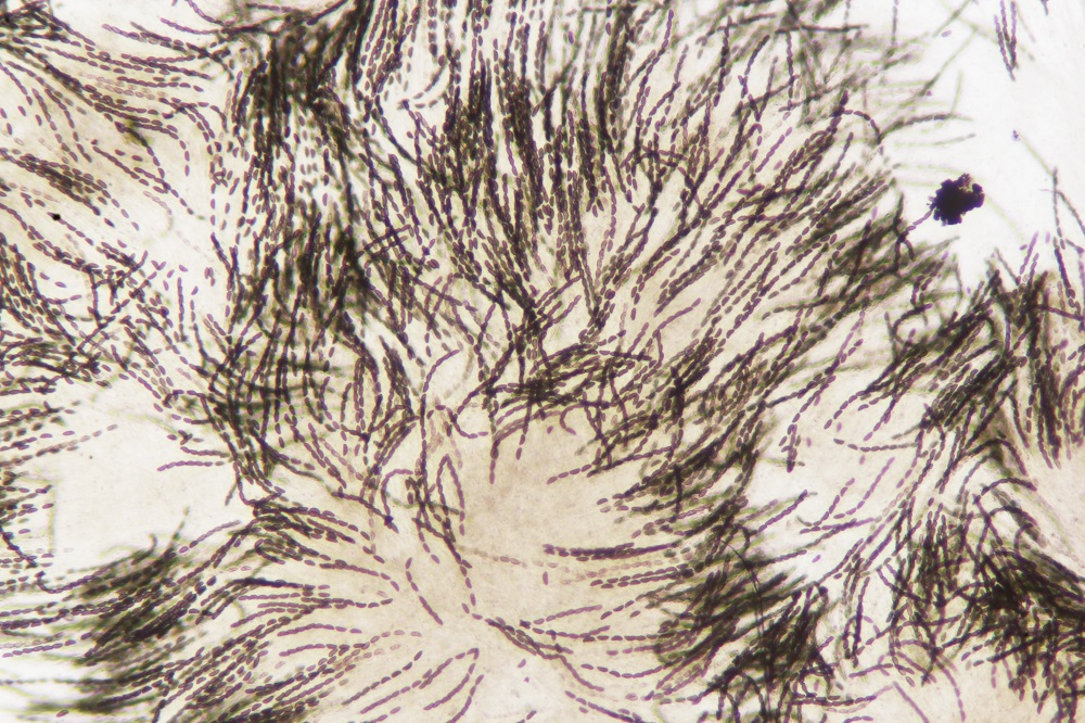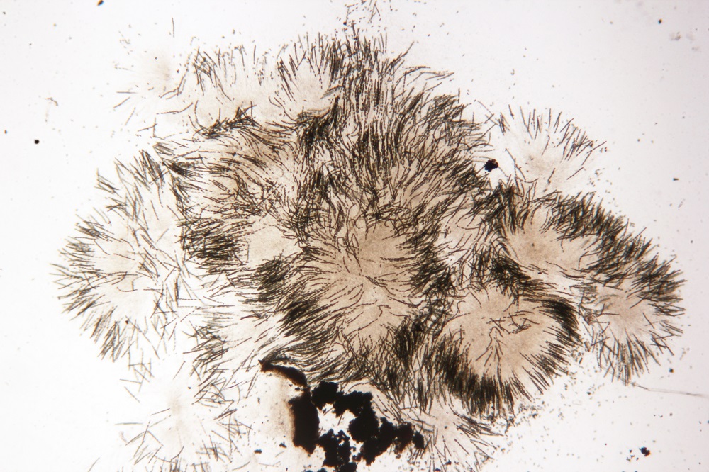 Perithezien kugelig, schwarz, etwa 0,25-0,5 mm im Durchmesser, Ostiolen papillenförmig.