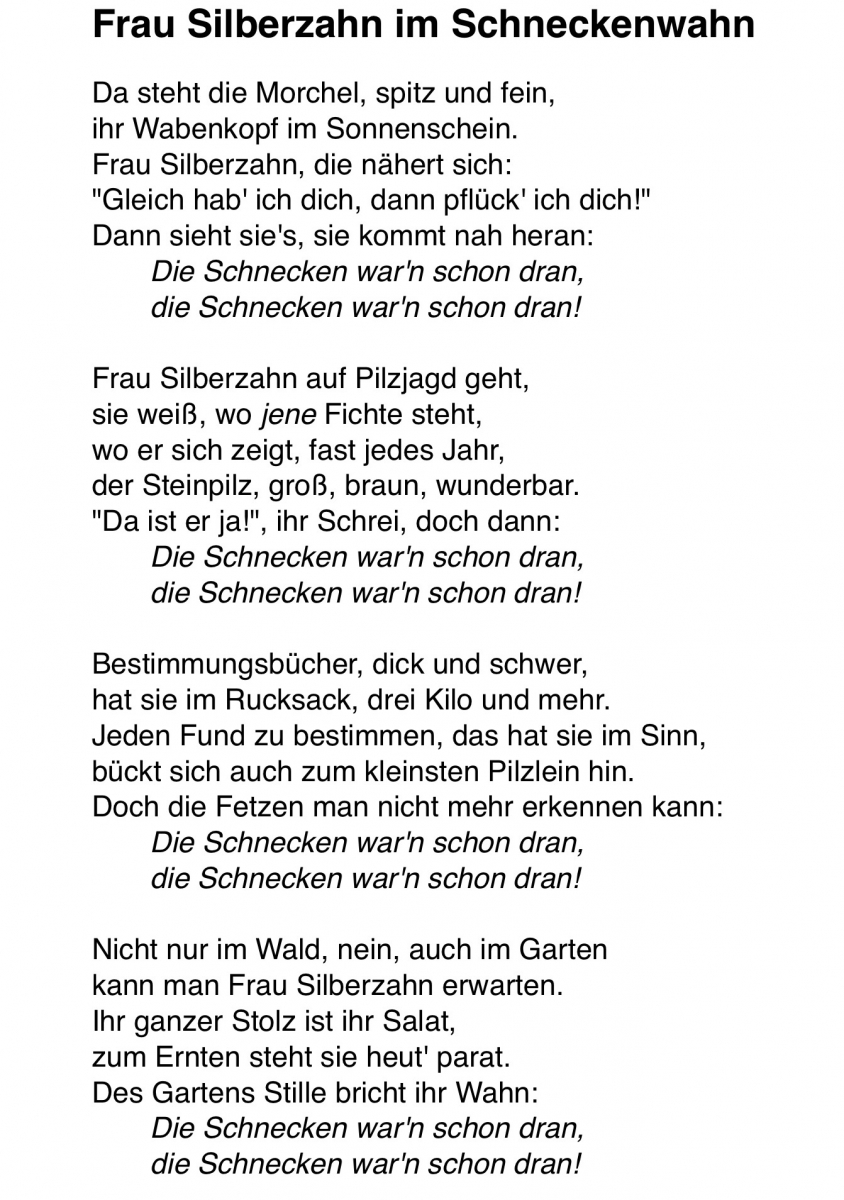 Jedes eurer Gedichte hat selbstverständlich irgendwie die Pilze mit im Gepäck.