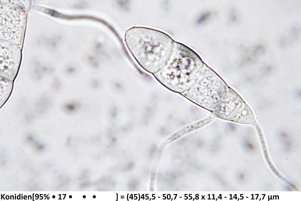 Für die Mikroskopie empfiehlt es sich ein Präparat mit Tesa-Film zu machen. Die wunderschönen Sporen (max. 70 x 16 µm) sind eine erfolgreiche Nachsuche auf jeden Fall wert.
