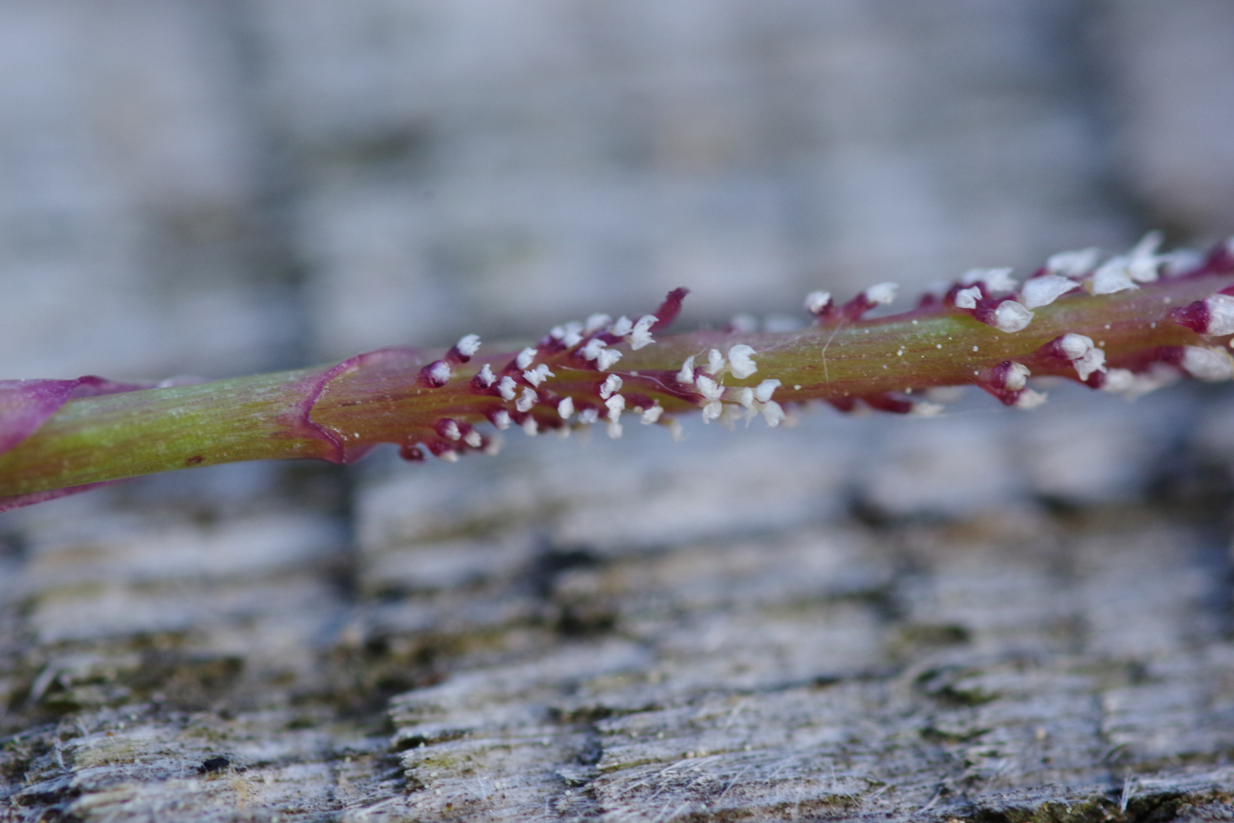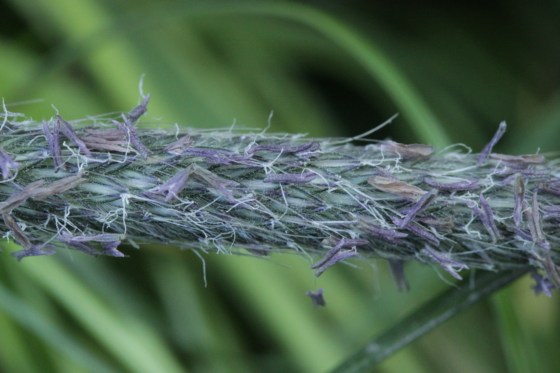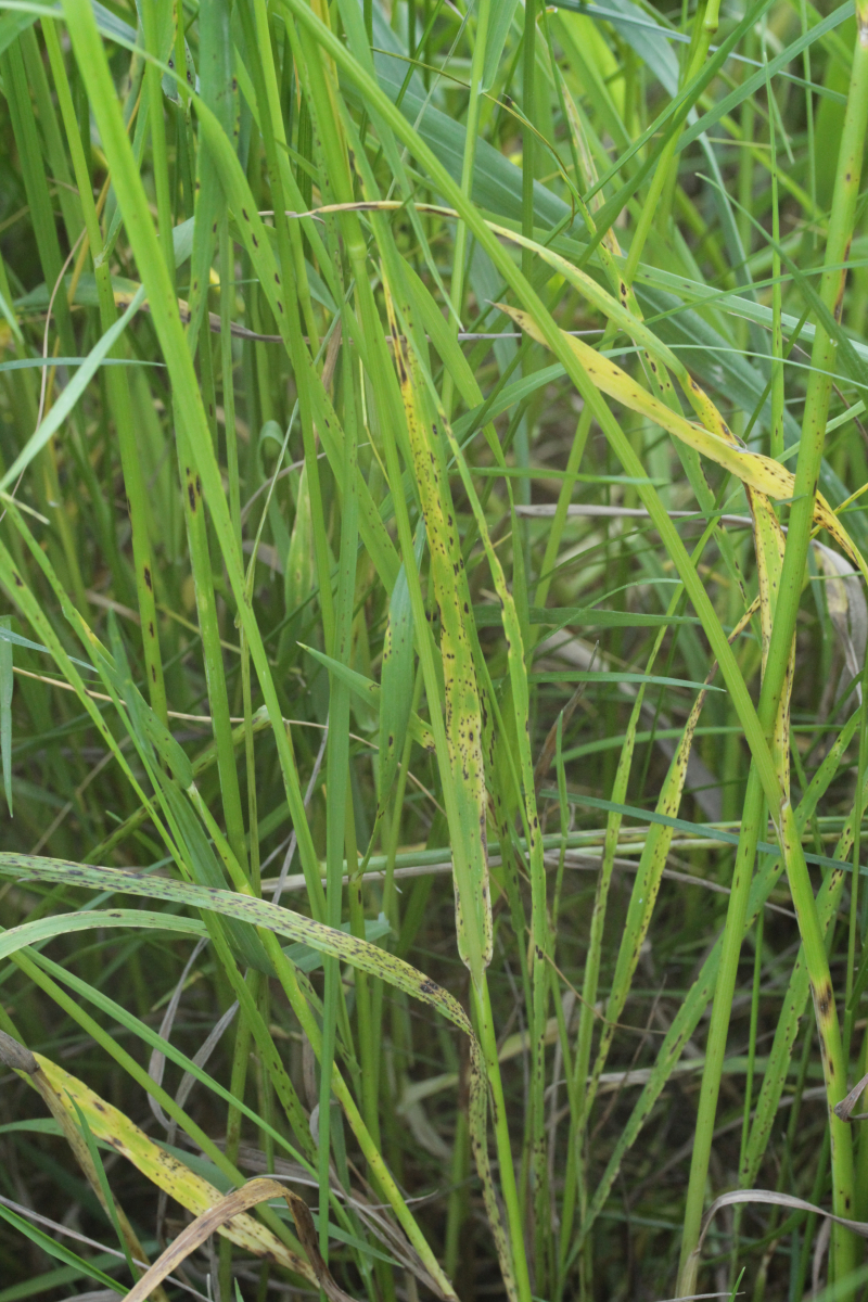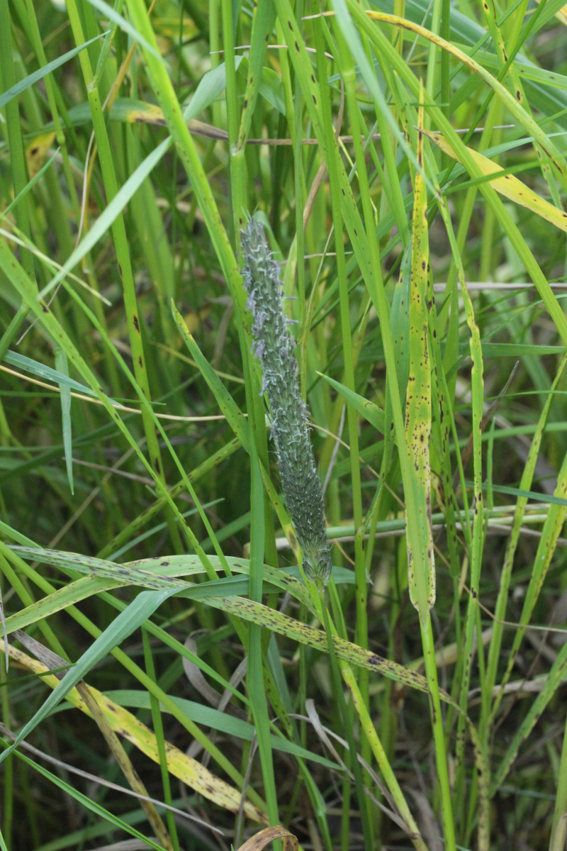 Fangen wir mit einem Pilz an, der recht häufig, leider aber vollkommen unterkartiert ist. Ich rede von Mastigosporium album, einem sehr häufigen Blattfleckenerreger auf dem Gemeinen Wiesenfuchsschwanz Alopecurus pratensis. Die wenigen Fundpunkte in Deutschland sind ein Witz. Nur noch eine kurze Bemerkung zur taxonomischen Stellung der Pilzart. Diese ist unsicher, denn eine teleomorphe Form konnte bisher noch nicht nachgewiesen werden. Sicher ist, dass sie zu den Pezizomycotina gehört.