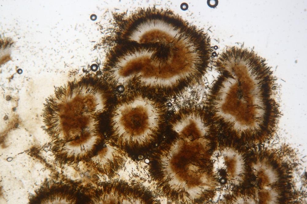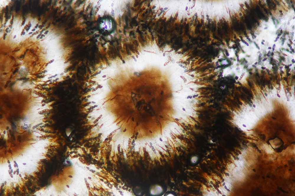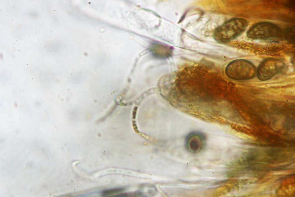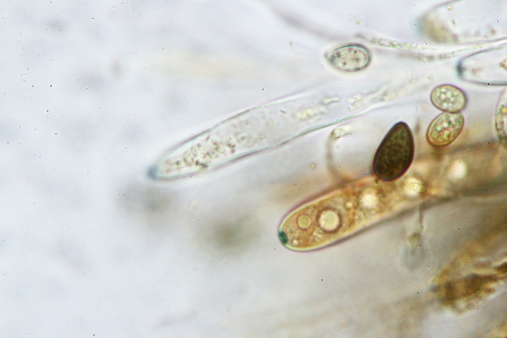Sporen in Mikroskop : dunkelbraun , elliptisch - bohnenförmig , glatt