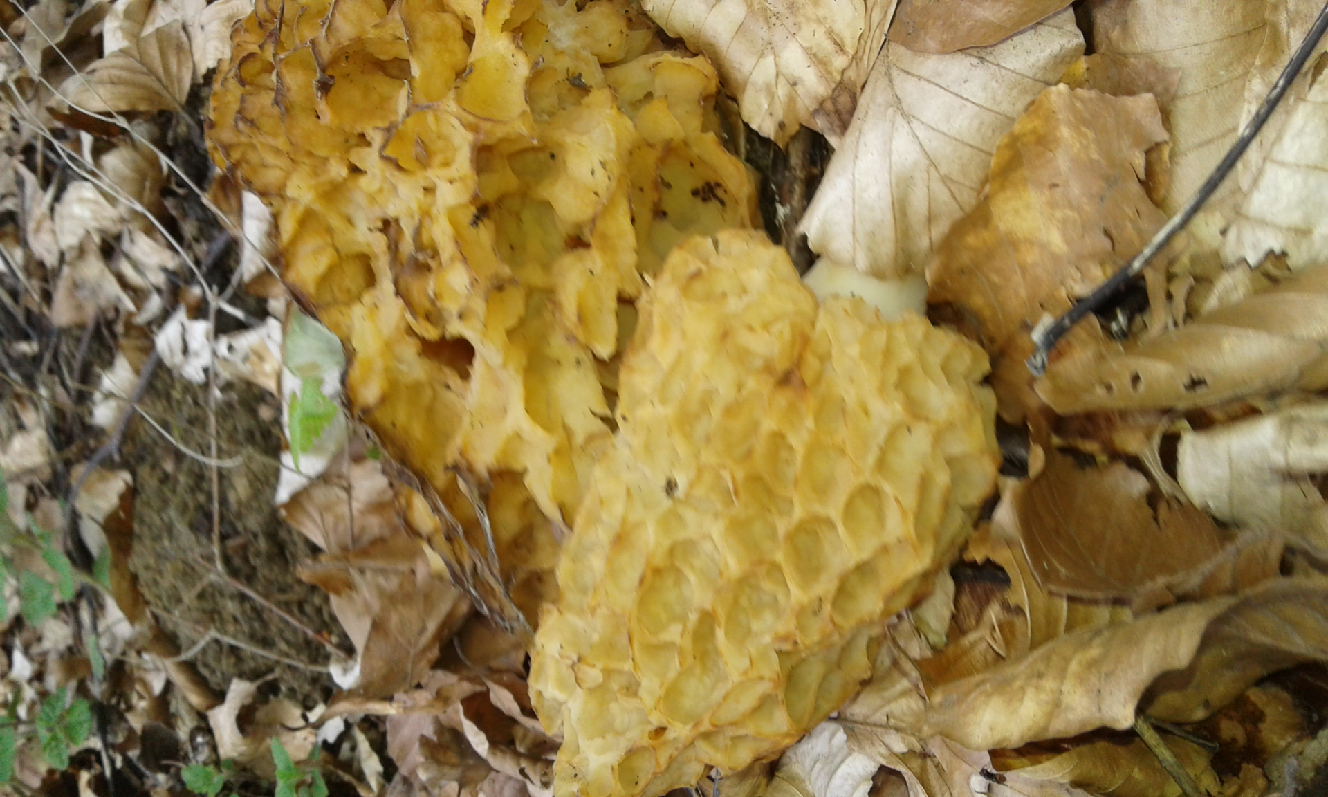 Bei meiner Morchelfundstelle stehen nur hohe Buchen, fast keine Begleitpflanzen in unmittelbarer Umgebung, leichte Hanglage (Nord), kalkhaltiger Boden.. Also alles was sonst zu möglichen Fundorten beschrieben wird, passt hier nicht. Deswegen hatte ich dort gar nicht mehr gesucht. –žGefunden–œ hab ich sie, weil in ca. 15 m Entfernung der Wanderweg verläuft und ich mich wunderte, was da auf dem Laub liegt.