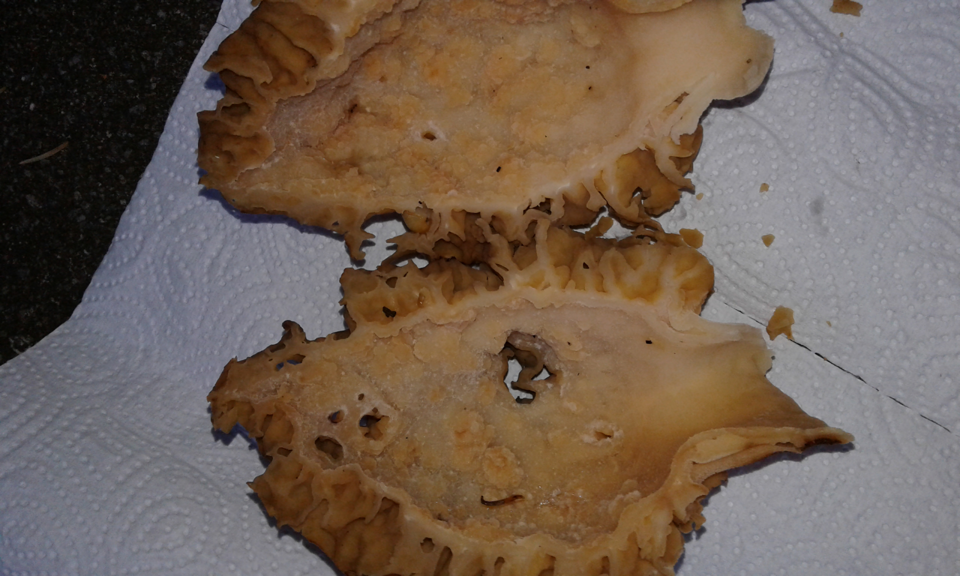 Die Größte hab ich nur als "Angebermorchel" mitgenommen :shy: Natürlich landet die nicht mehr in der Pfanne. Die anderen schaue ich mir beim Aufschneiden auch noch gründlich an. -