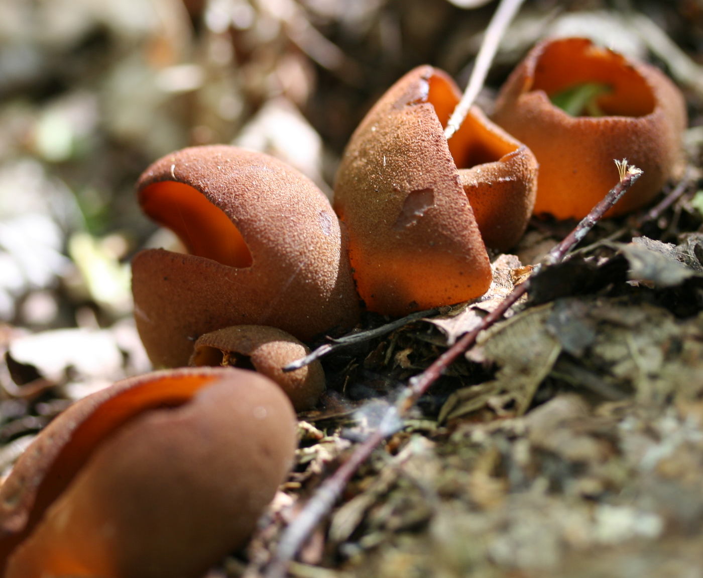 4.: Ist ein Öhrling, keine Peziza. Wegen den seitlich tief eingeschlitzten und eingerollten Fruchtkörpern. Auch da kommt ohne Mikro nichts Gesichertes raus, leider.