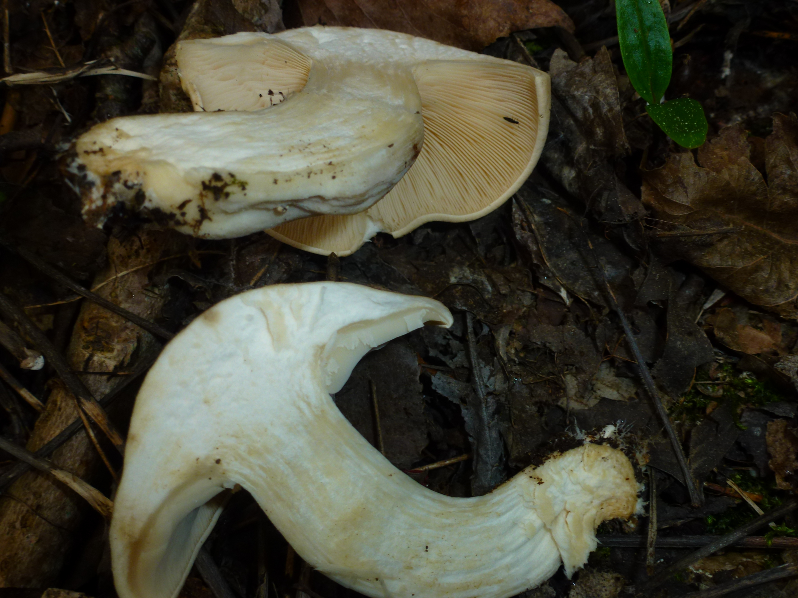 Riesenrötlinge (Entoloma sinuatum) können auch mal recht dickfleischig sein. Aber tendenziell passt das schon eher zum Maipilz, auch mit den eng stehenden lamellen.