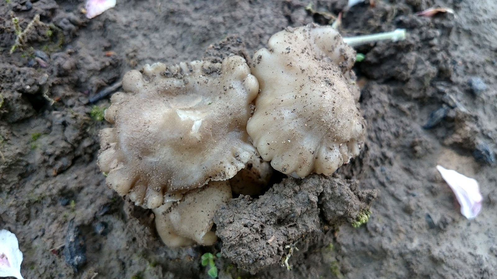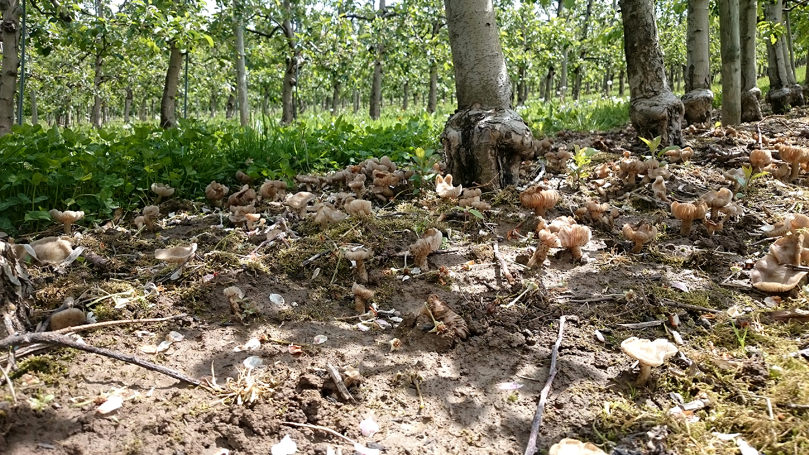 Der Pilz wächst hier bei Kirschbäumen. Der Boden dort ist sehr lehmig-schwer und momentan