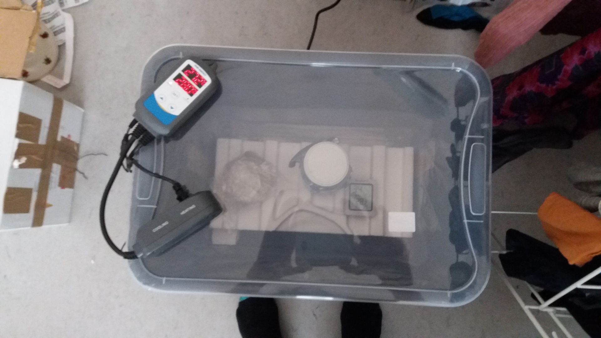 Auch die 2 Gläser sind ok und können nun beimpft werden! Gesagt getan, und ab damit in die Brutbox ( eine Kiste mit einer Heizmatte und einem Temp.regler sowie einem Thermo/Hydrometer - die temp. auf konstante 28Grad eingestellt und ab die Post....