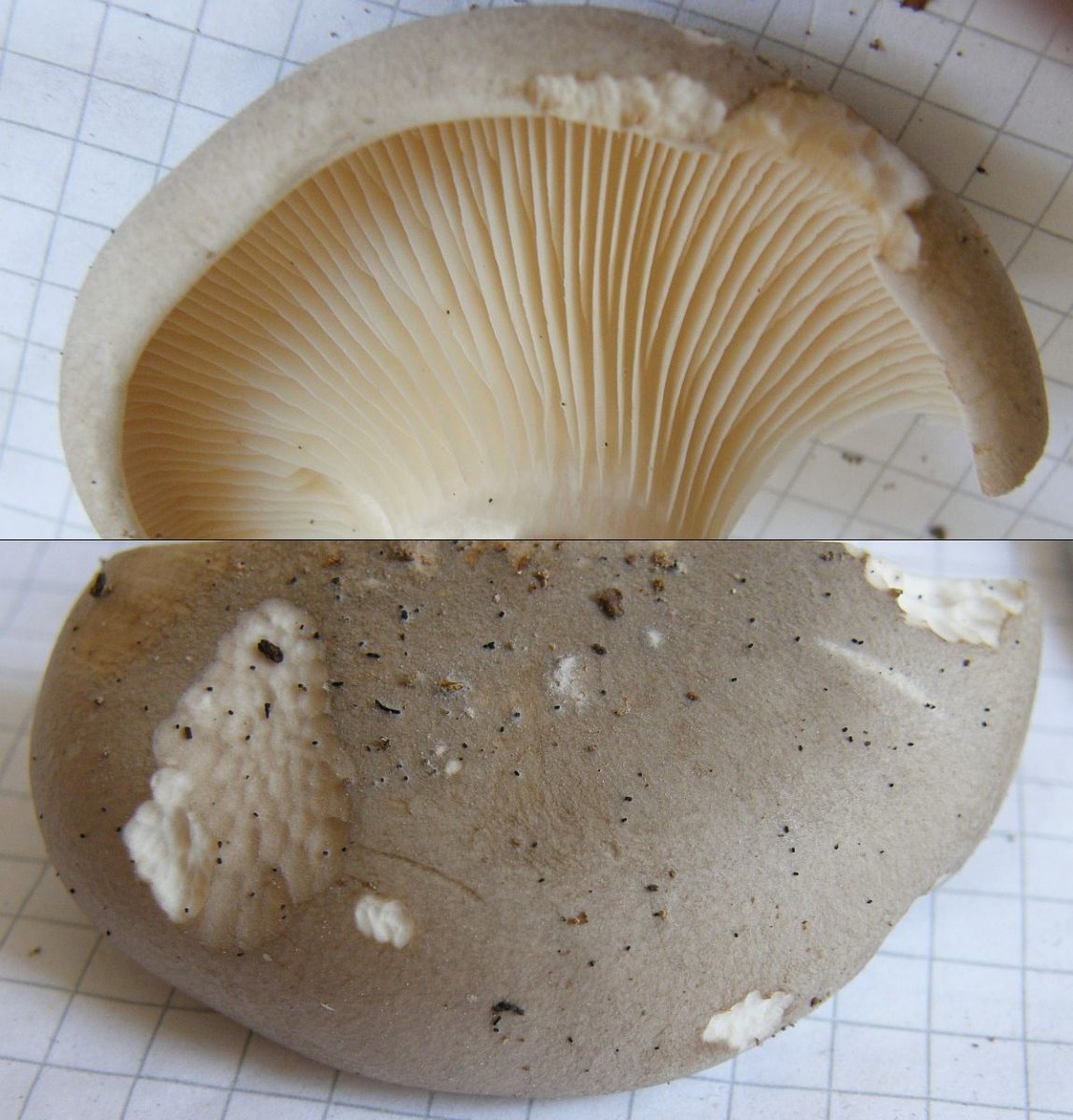 Zweitens: Lamellen. Diese sind lepistaartig abschiebbar (klappt ja auch bei nebelkappen), aber sie sind schon beim frischen, jungen fruchtkörper nicht weiß, sondern blass cremegelblich, beim Antrocknen verstärkt sich dieser Farbton noch.