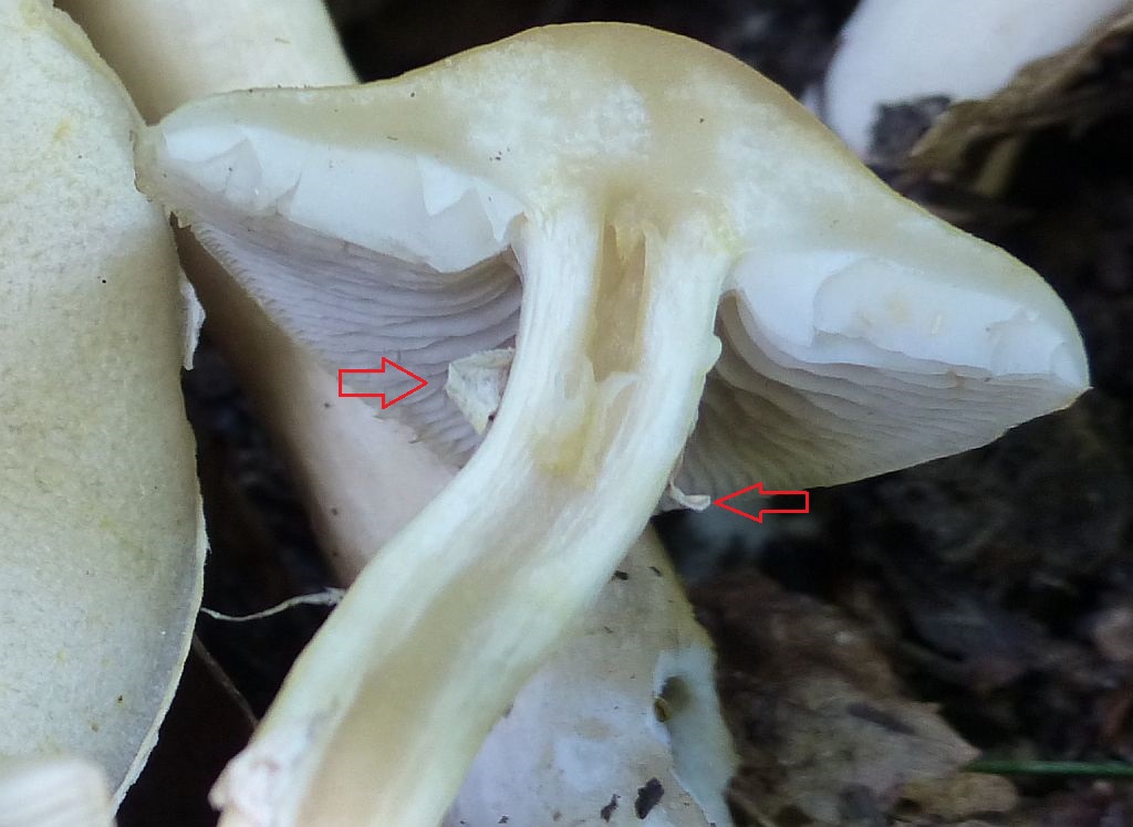 Lamellen: leicht gräulich, regelmäßig, aber untermischt, etwa 3-5 mm hoch,