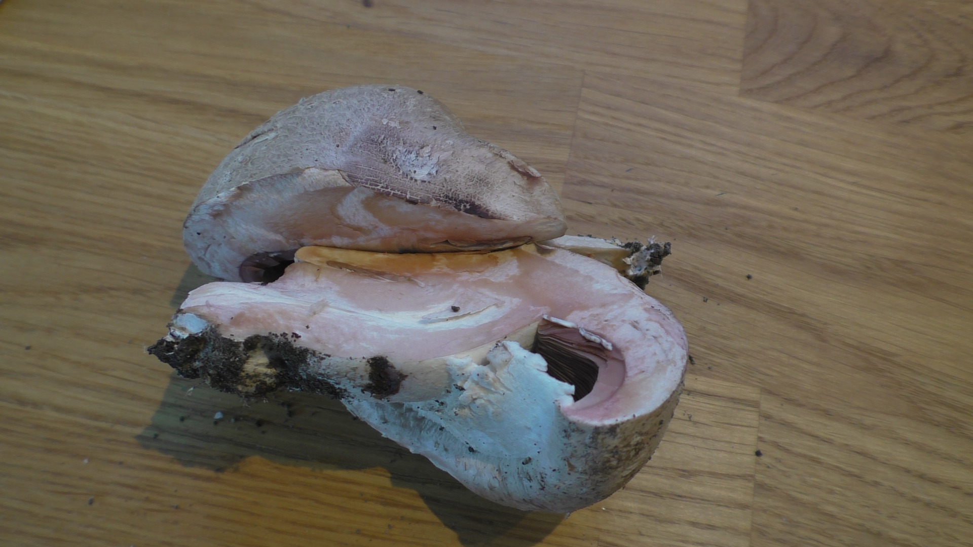 Bei Schnitt rosa färbend, Verfärbung wird nach kurzer Zeit dunkelbraun
