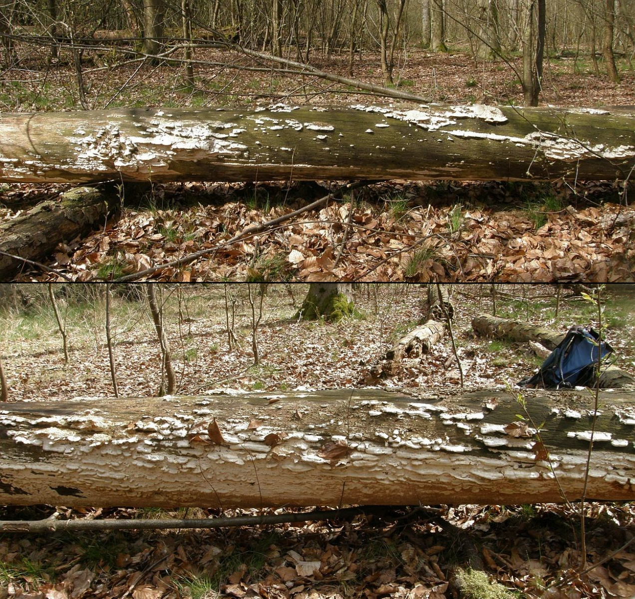 Verwechslungen: In typischer Ausprägung kann man die Art im Wald schon aus 10 Metern Entfernung bestimmen. An einem liegenden Buchenstamm sind die weit ausgebreiteten, üppig ineinander fließenden Fruchtkörper in ihrem hell ockerlichen Farbspiel ein beeindruckender Anblick.