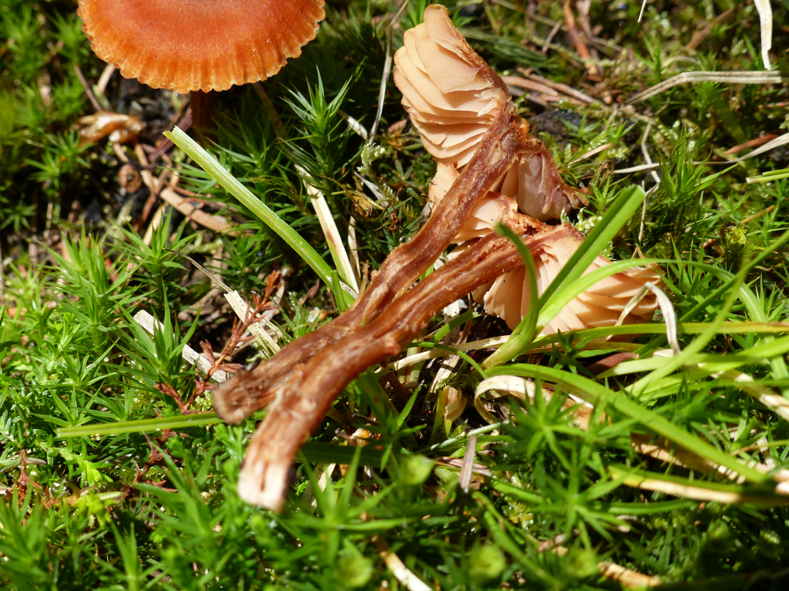 Lamellen: etwas weiter auseinander, untermischt, etwas heller als der Hut,