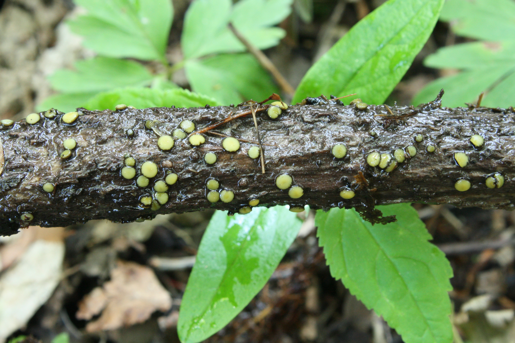 Ich bítte mal wieder um eure Hilfe, denn bei diesem Pilz habe ich keinen Dunst. An einem im Wasser liegenden Holzstück fand ich kleine gelbe Punkte, Durchmesser so ca 2 - 3 mm. Weiß jemand, um welchen Pilz es sich hier handelt?