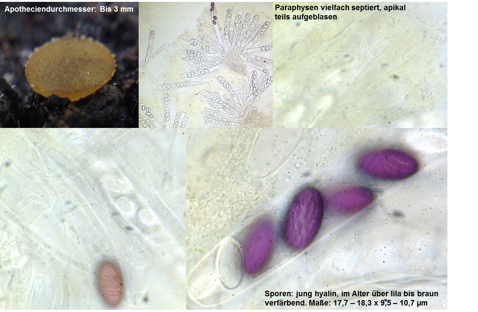 . Beim Schlüsseln lande ich bei Ascobolus lignatilis. Seht ihr das auch so, oder spricht da etwas dagegen? Ich habe versucht ein paar Merkmale zu knipsen, auffällig ist auf jeden Fall das variable Ornament (von Längsgestreift mit Querverbindungen bis "gebogen-querstreifig"):