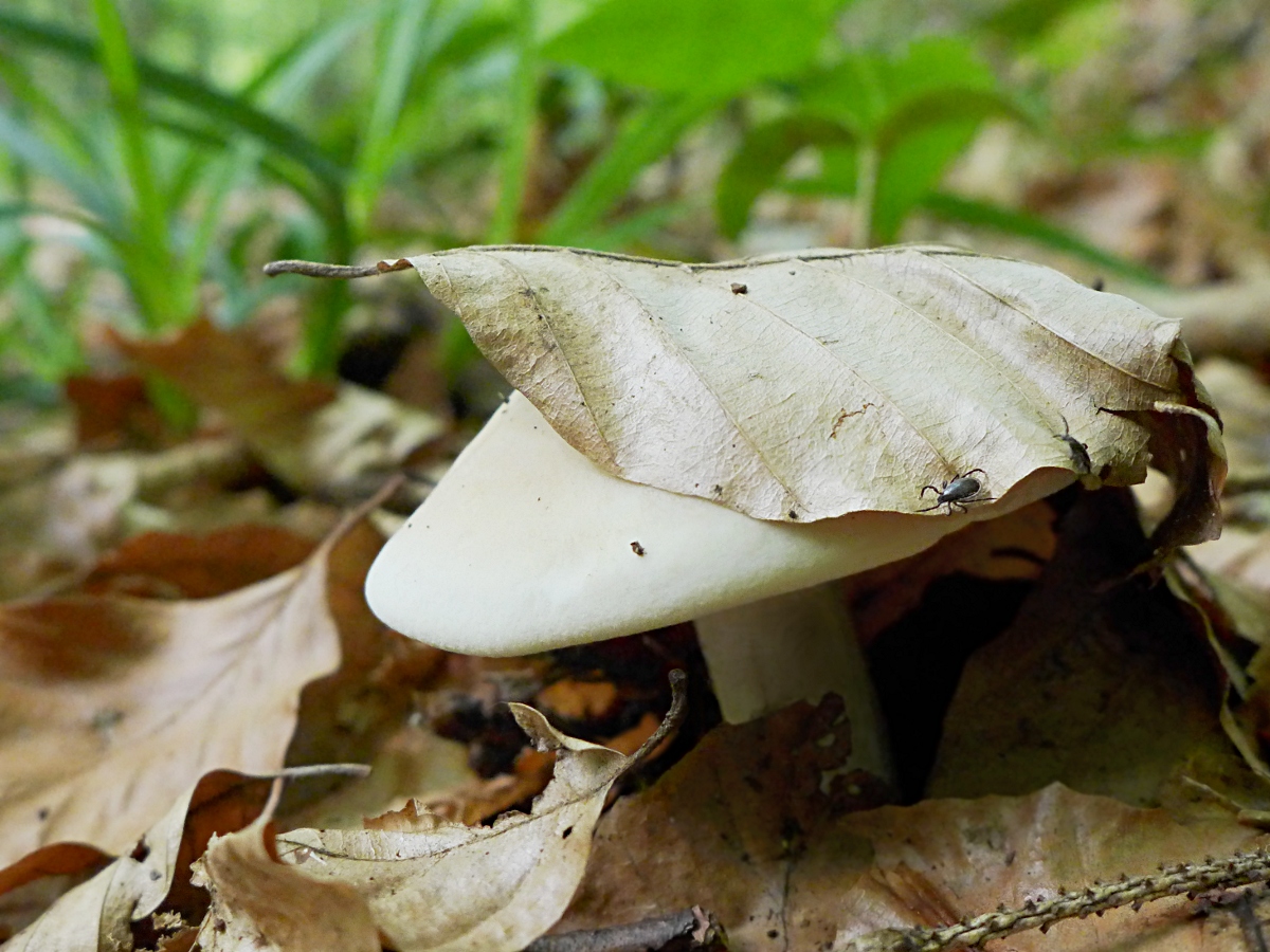 Naja, ist eben ein weißer Pilz, der macht nicht viel her, keine Unterseite oder besondere Struktur... ohne Zecke wäre das Bild noch viel langweiliger gewesen.