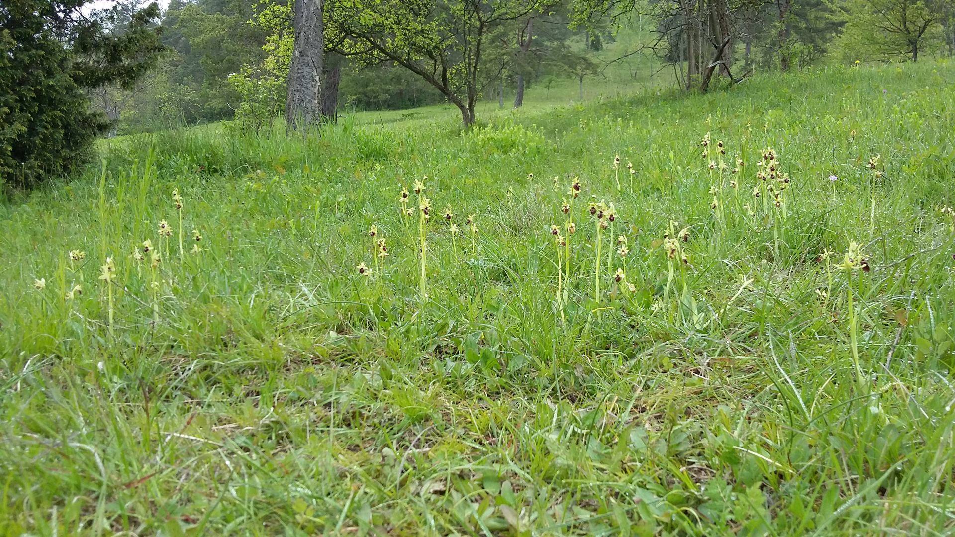 nachdem Karl mir mit seinen Orchideenfotos den Mund wässrig gemacht hat und pilzmäßig hier so gar nichts los ist, haben wir uns heute auf die Socken gemacht und eine kleine Orchideenexkursion unternommen. Für zwei Arten waren wir zwar spät dran, aber nicht zu spät. Mir hat es mordsmäßig viel Spaß gemacht und gelernt habe ich auch wieder eine ganze Menge. Zum Beispiel, dass Thüringen das orchideenreichste Bundesland ist und dass die hiesigen Frauenschuh-Vorkommen die Aufkommen in Hessen und Niedersachsen zusammen übertreffen. Das ist doch mal was für die frühjahrspilzmangelleidende Seele