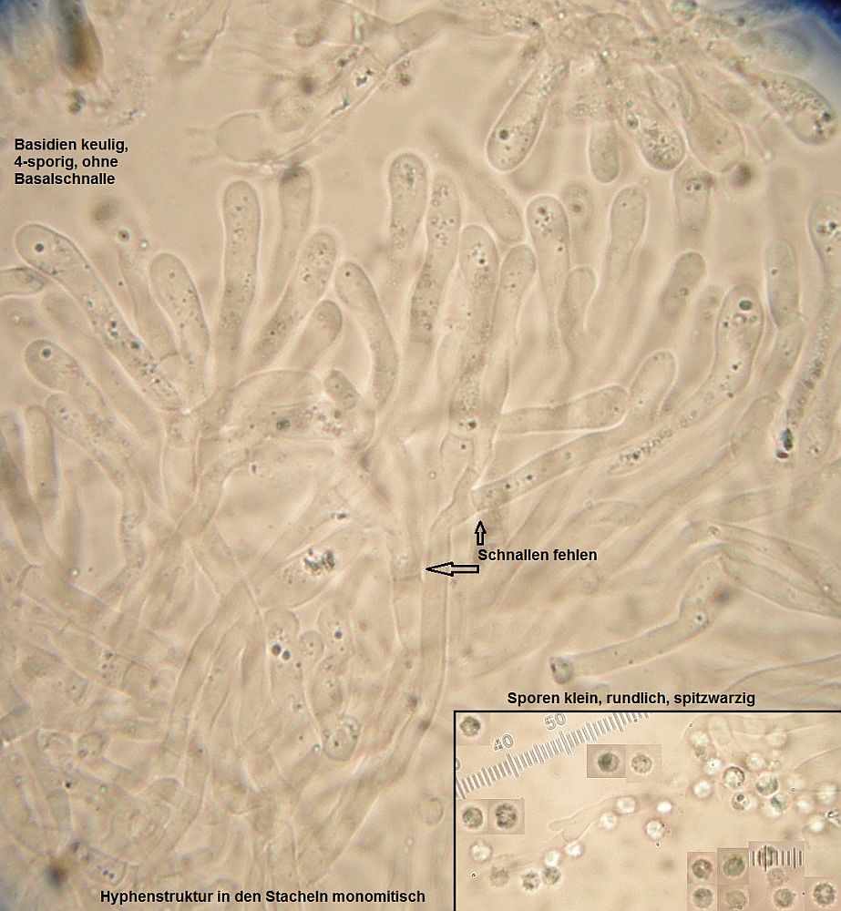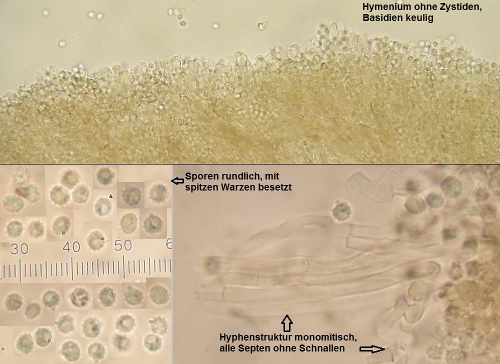 mikroskopische Eigenschaften: siehe Bilder unten; insgesamt unauffällig und kaum bestimmungsrelevant. Sporenpulver im Abwurf weiß.