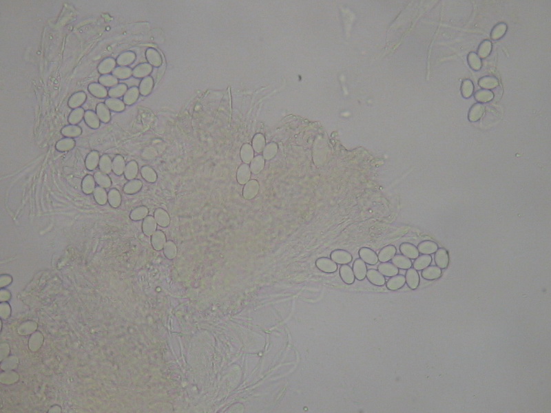 dann sind hier die Asci mehr keulig, kürzer als in der Lit. angegeben und die Sporen nicht in Zweierreihen.