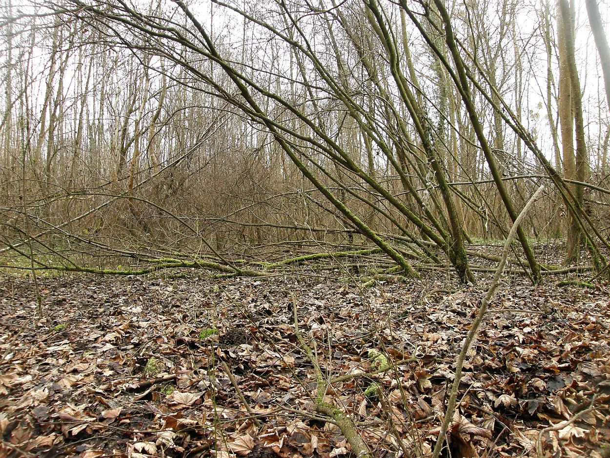B) 25.12.2016; Auwald bei Weissweil (Südbaden) am Rhein; an berindeten, schräg im Luftraum hängenden Laubholzstämmchen und Ästen: