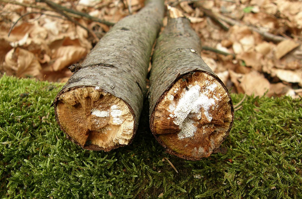 >Antrodia gossypium = Weiche Braunfäuletramete<