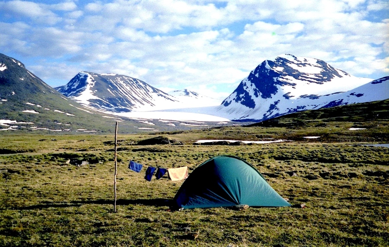 Und zum Schluß noch ein versöhnliches Bild aus dem Sarek-Nationalpark in Schweden, wo ich vor vielen Jahren oft meinen Urlaub verbracht habe. Der Gletscher ist jetzt allerdings auch dort kleiner geworden und der Schnee auf den Bergen ist im Sommer verschwunden. (kann man sich bei Google Earth ansehen) Das Land, noch ein gutes Stück größer als Deutschland, hatte damals, wenn auch klimatisch bedingt, nur 6 oder 7 Millionen Einwohner. Ein wie ich meine venünftiges Verhältnis zwischen Natur und Zivilisation. Man konnte tagelang wandern, traf nur wenige Leute und hatte das Jedermannsrecht. Dafür hat man dort auch nie seinen Müll liegen lassen.