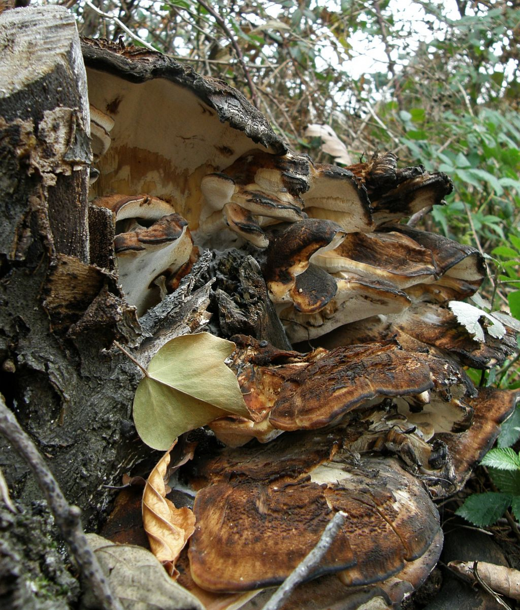 • Ooooh, da habe ich auch noch einen. Ein wirklich stattliches Exemplar an einem Baum im Park. Das Dritte Bild nur zum Größenvergleich der Pilzmasse.