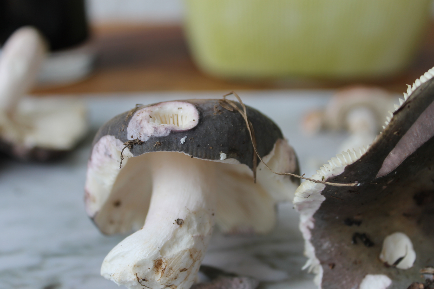 Russula parazurea, an den ich zuerst gedacht hatte rausfällt. Die Pilze standen eine