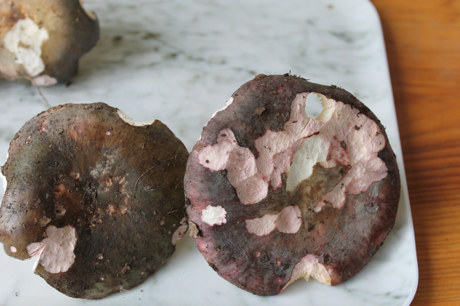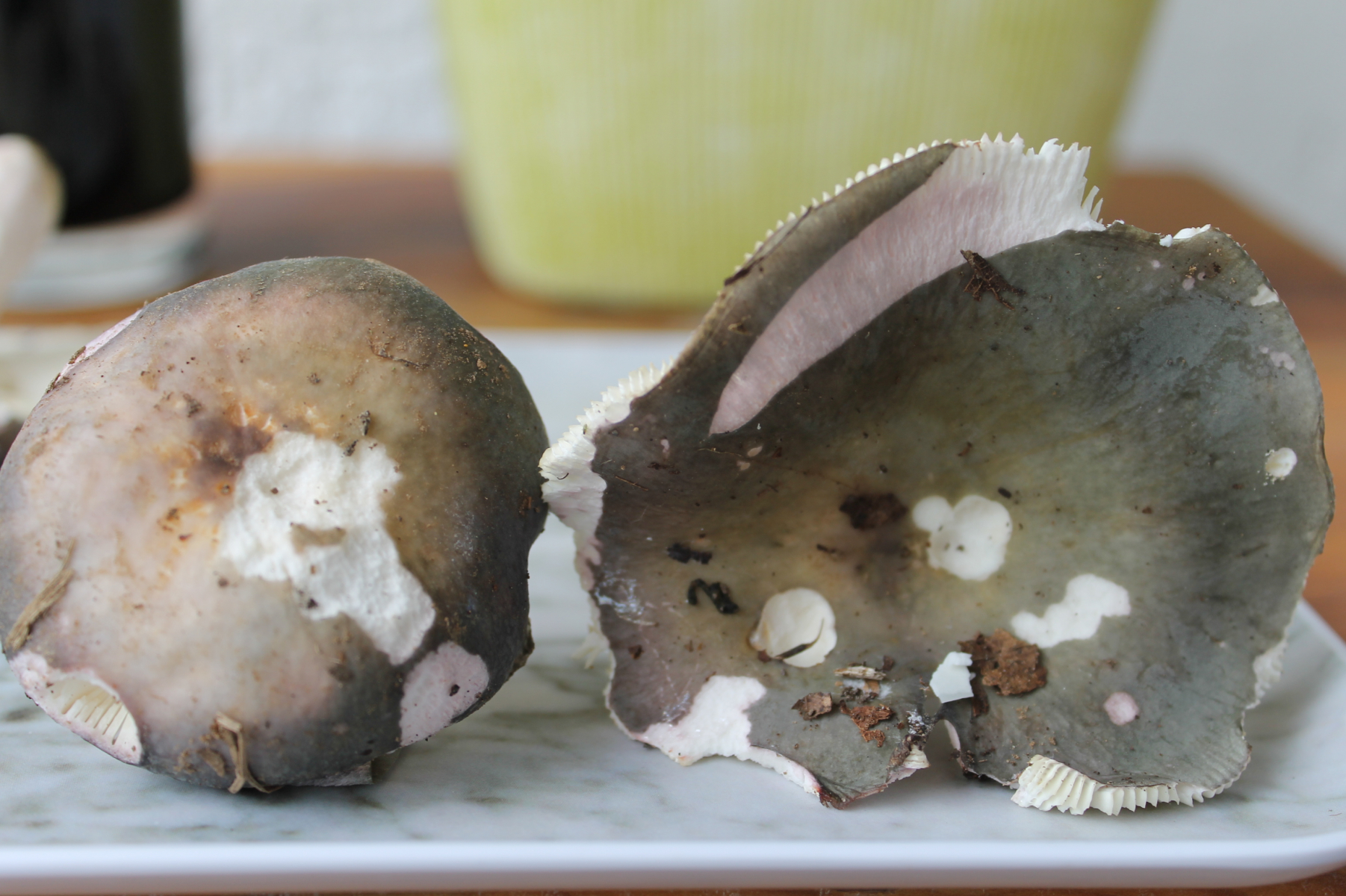 Russula parazurea, an den ich zuerst gedacht hatte rausfällt. Die Pilze standen eine