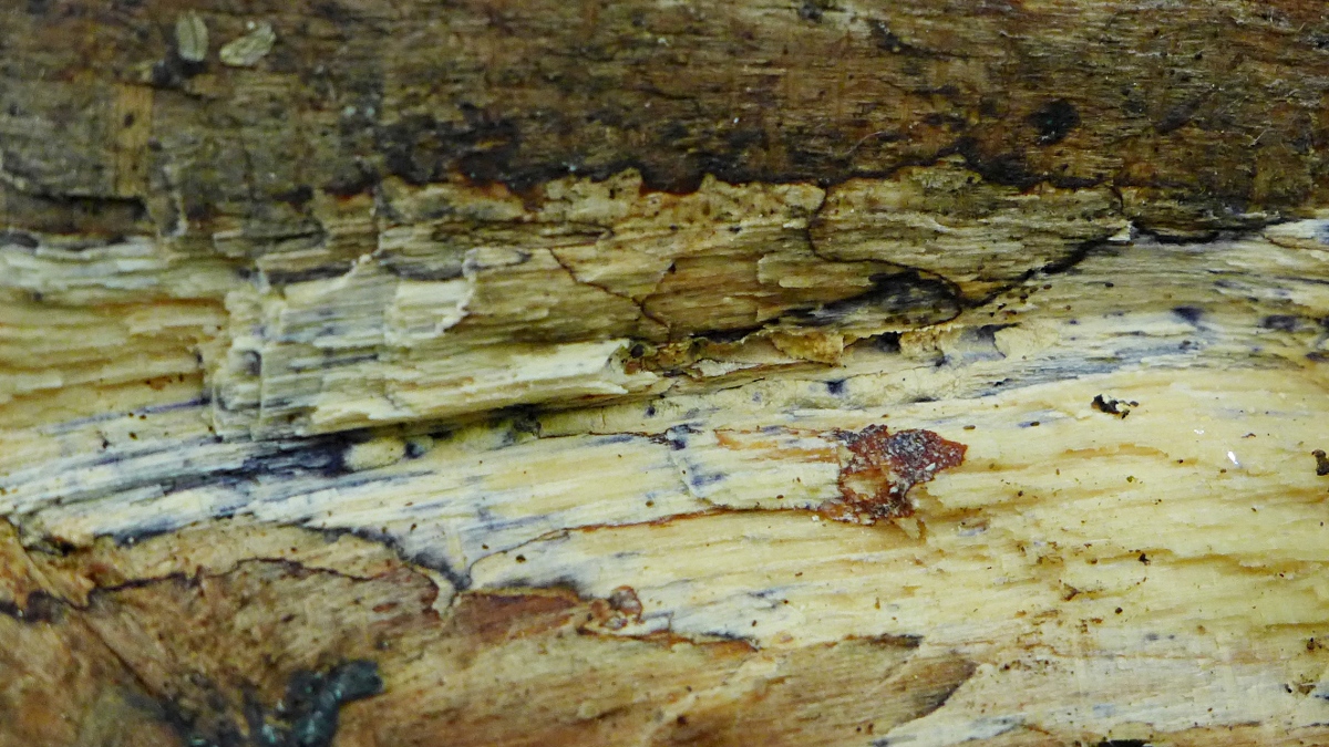 14 Tage später war KEIN Blauer Rindenpilz offensichtlich (nur noch "nacktes" Holz), jedoch im Inneren sah man feine blaue Linien.