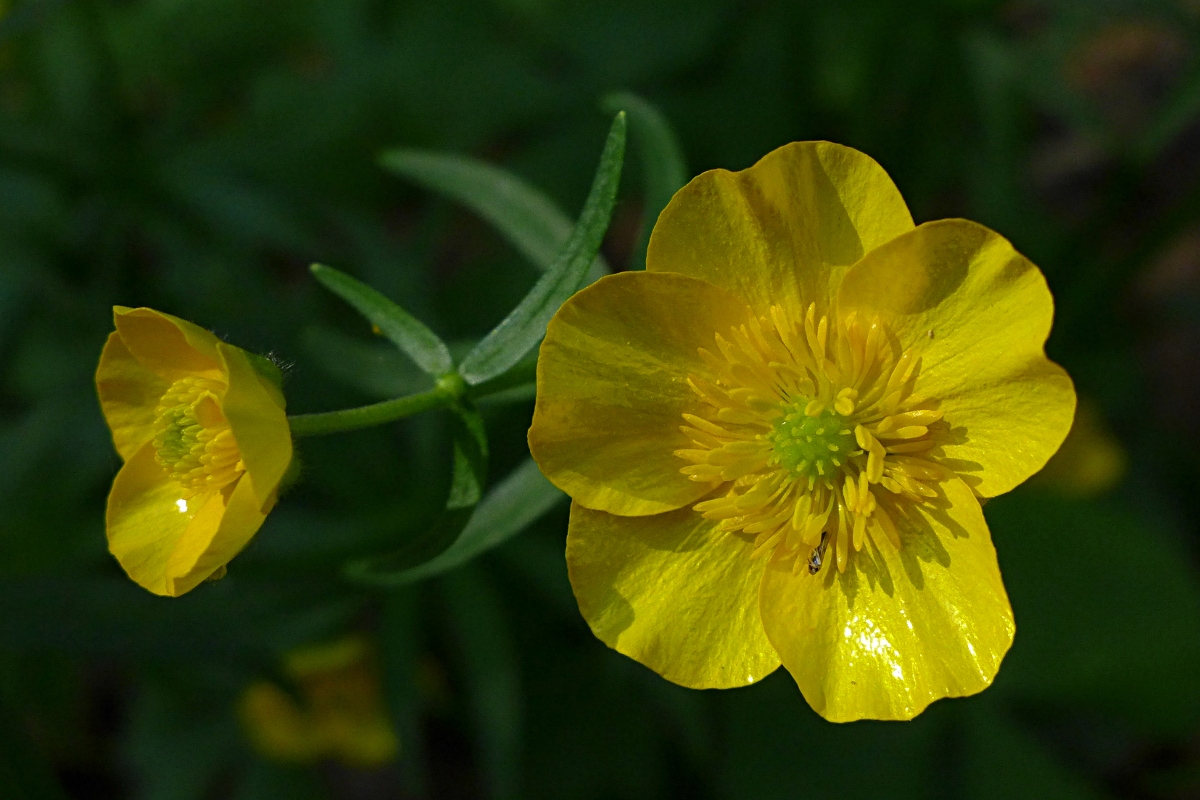 Mal wieder scheint die Sonne so schön und lässt das Gelb vom Goldschopf-Hahnenfuß, Ranunculus auricomus agg. kräftig leuchten.