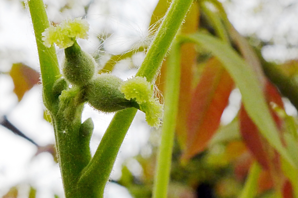 Hatte ich in meiner letzten Zusammenstellung - kurz-kurz-lang - männliche Walnussblütenstände kurz vorm Aufbrechen gezeigt, so bot es sich an, auch noch mal die geöffneten Blüten zu fotografieren, sowohl die männlichen als auch eine Woche später die weiblichen Blüten - Juglans regia.