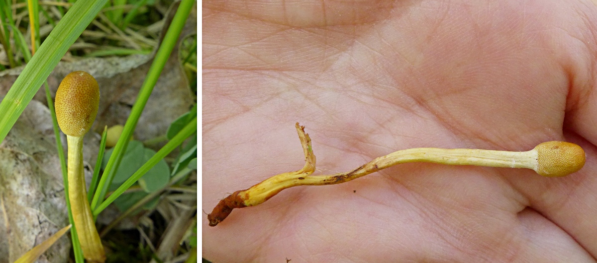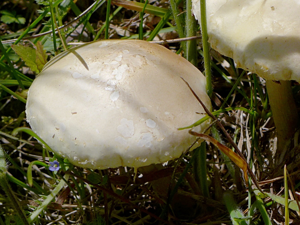 Kurz darauf stellten sich mir auf ähnlichem Gelände (Wiese, Trockenrasen auf Kalk, aber in einer feuchteren Senke) wieder weiße Pilze in den Weg.