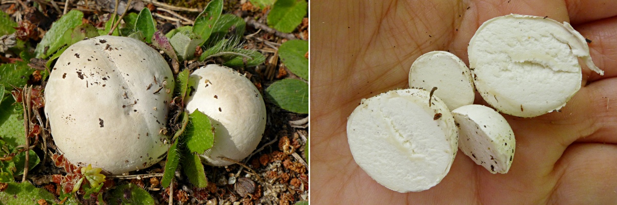 Auf einem schotterigen Grund wuchsen aber eine Vielzahl von diesen kleinen ungestielten Bovisten,