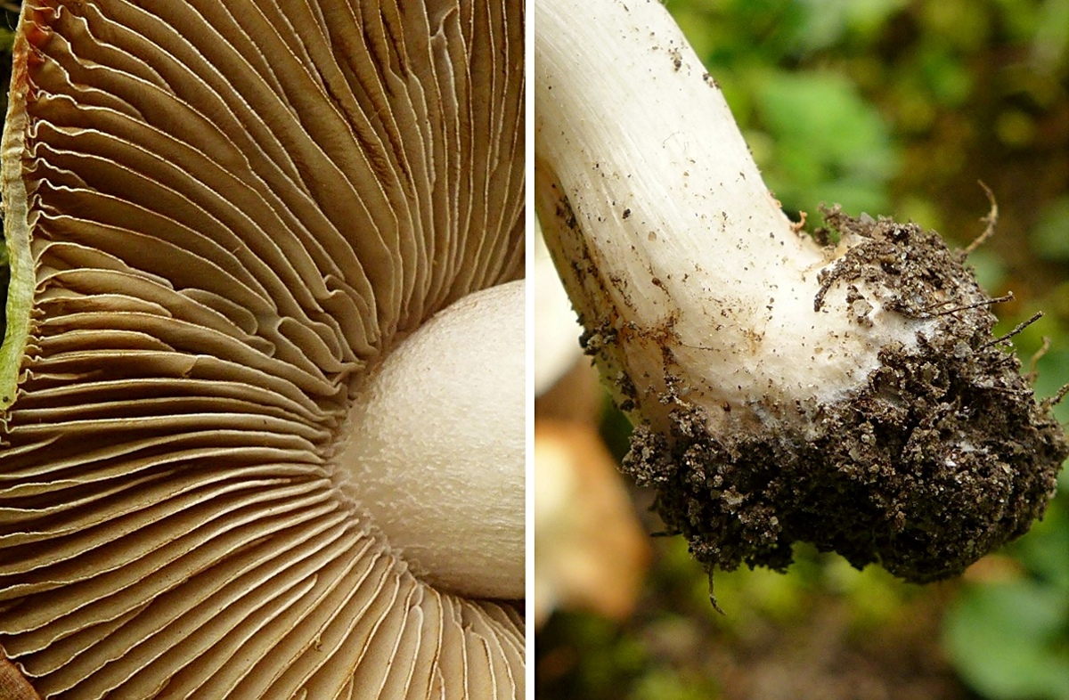 Diese hier gaben mir von oben Rätsel auf, aber die Lamellen, der Stiel, der Geruch nach Rettich und der in das Stielfleisch hereinragende Zapfen sagen Hebeloma sinapizans, Großer Rettichfälbling.