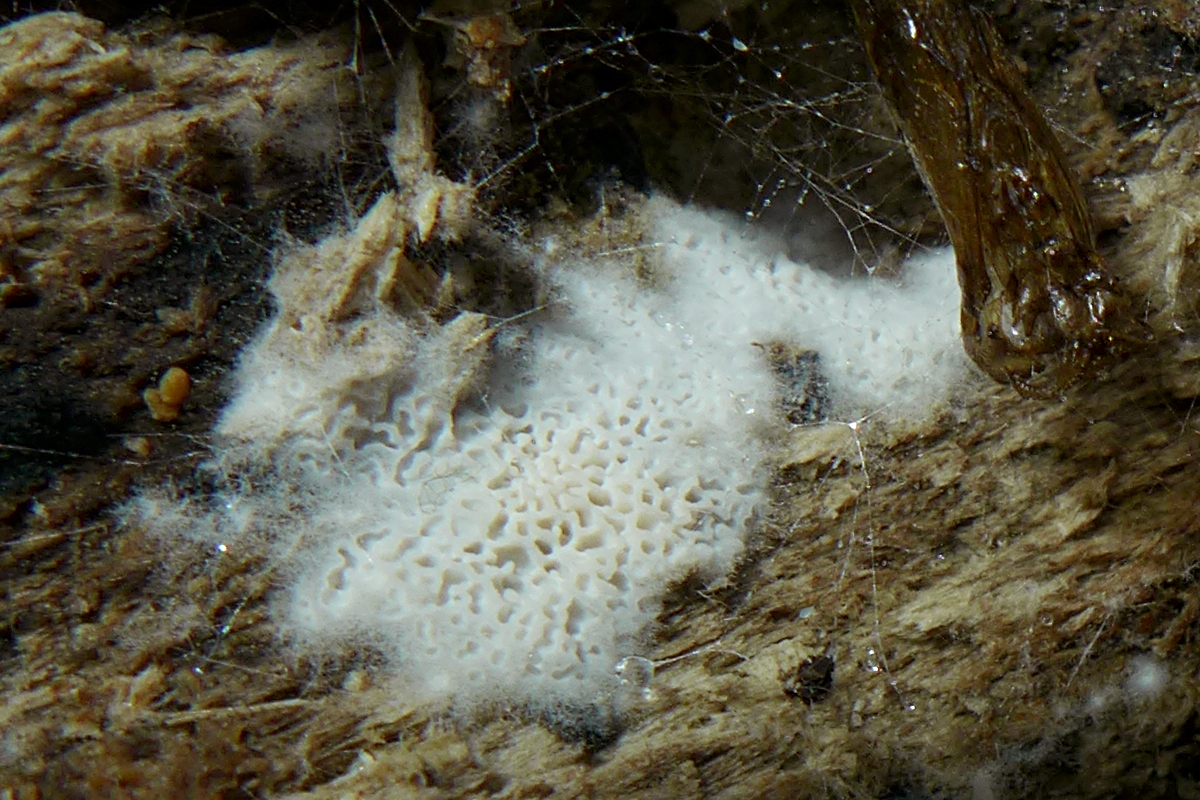 Oberhalb wächst rasig etwas, was ich NICHT für einen Schleimpilz halte, das sind noch viel kleinere Teilchen.