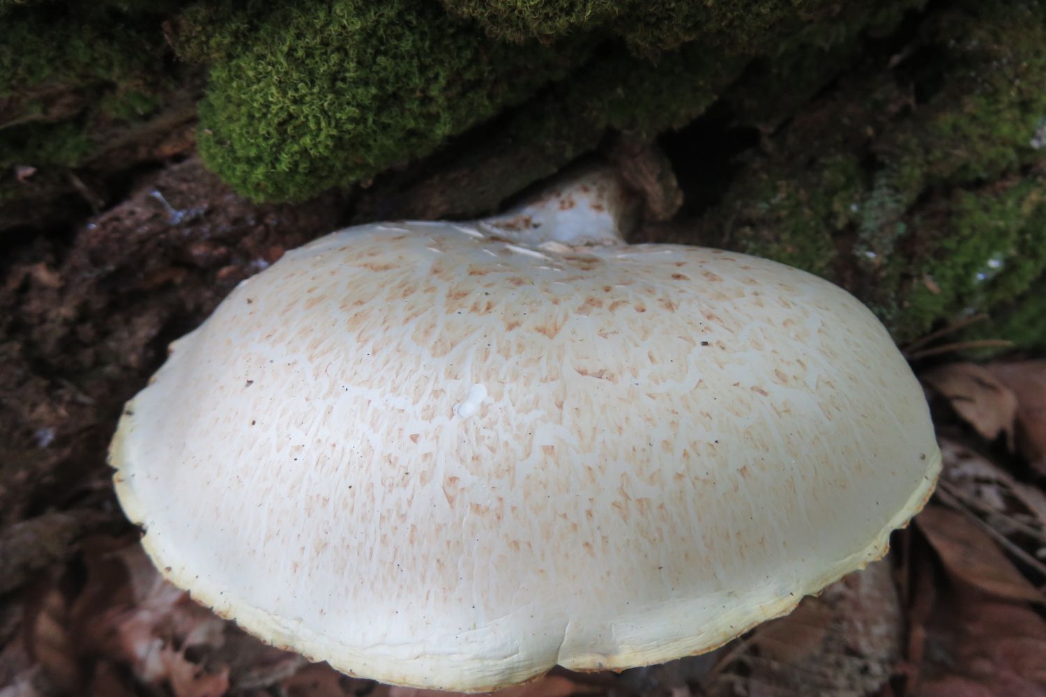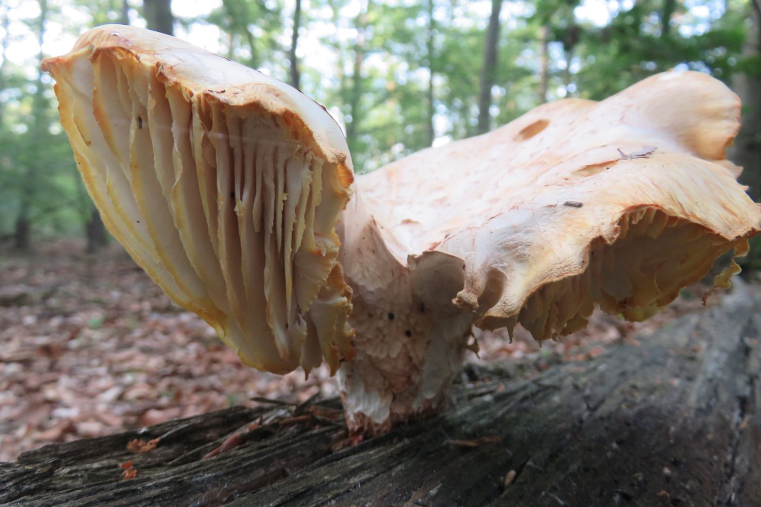 ich denke, das wird dennoch nichts anderes als der klassische Schuppige Sägeblättling sein. Der kann wohl so groß werden und so feinschuppig an der Oberseite ohnehin. Die stellenweise orangene Farbe würde ich als Alters-/Trocknungs- oder Bakterienbefallserscheinung werten. Natürlich mit Vorbehalt, weil der Pilz hier nur selten zu finden ist und ich daher die Variationsbreite der Art nicht wirklich gut kenne.