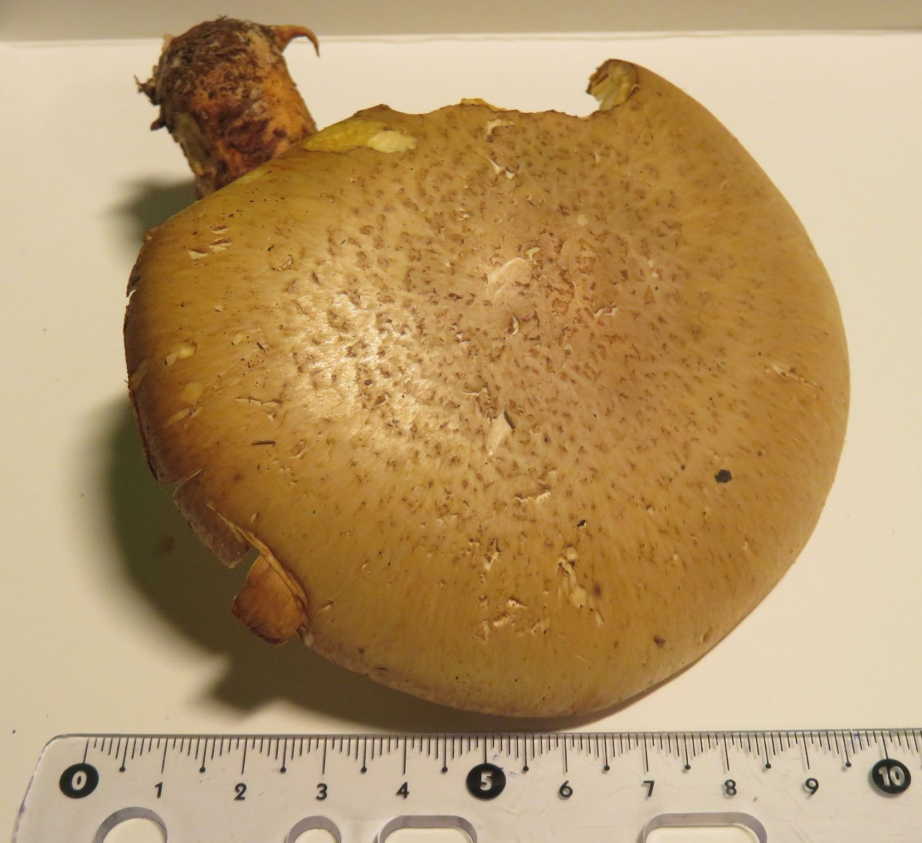wir haben den schuppigen sägeblättling auch vor kurzem gefunden und wenn er auch sehr schneckenzerfressen war, so hatte er auch diese stellenweise Gelbfärbung und ein Exemplar war sehr groß. Hutdurchmesser war nicht mehr feststellbar, aber der Stiel war mndestens 16cm lang und hatte an der Basis einen Durchmesser von über 4cm! Auch wir hatten uns gewundert, dass unsere Literatur nur von Stiellängen bis 12cm und Durchmesser bis 2cm sprach. Bilder hier --> https://www.pilzforum.eu/board…-4-persoenliche-erstfunde