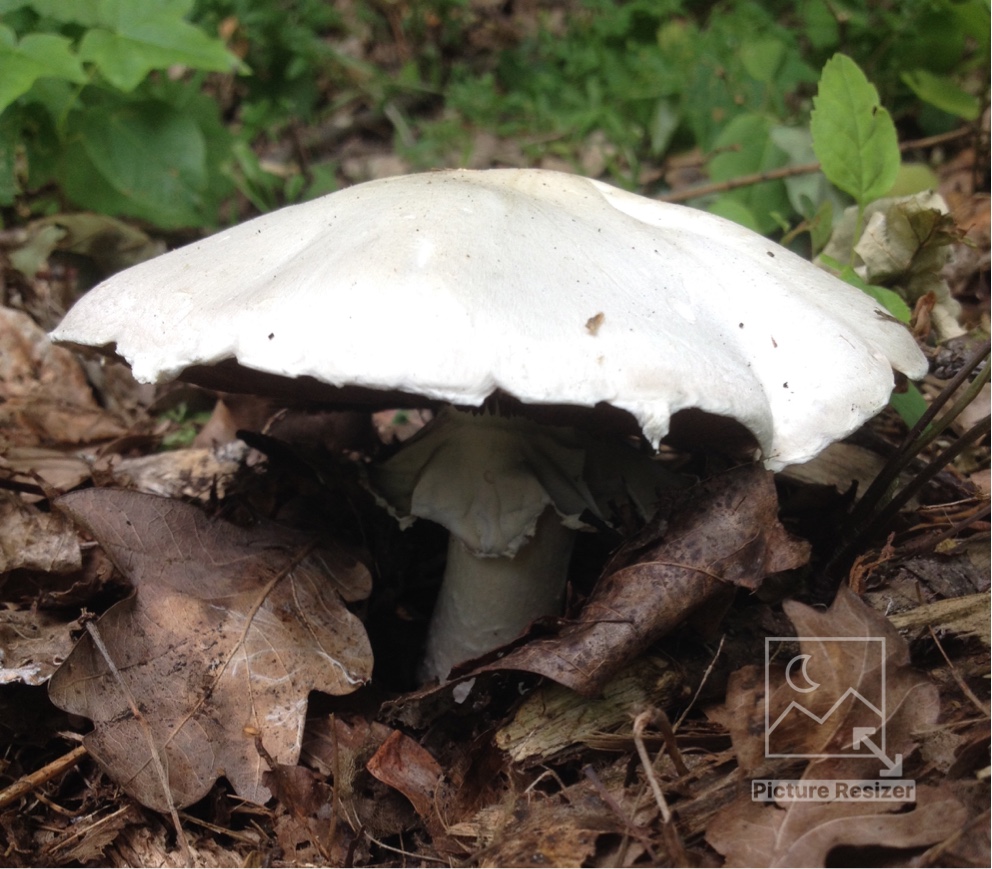 Hut: dm ca. 17cm, weiß bis cremeweiß, jung fast kugelig, alt flach, leicht radialfaserig, am Rand wenige, kleine Risse