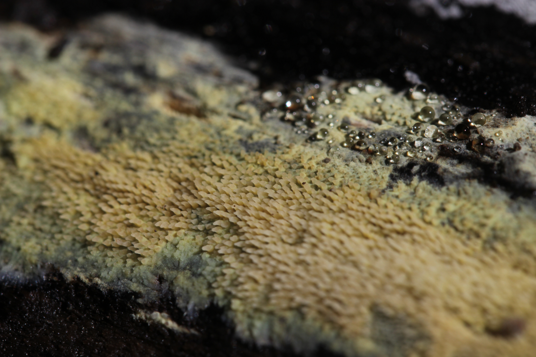 3.) Vielleicht Mycoacia uda? Gefunden auf der Unterseite eines dicken Astes (Durchmesser ~10cm), der im Graben am Wegrand lag.