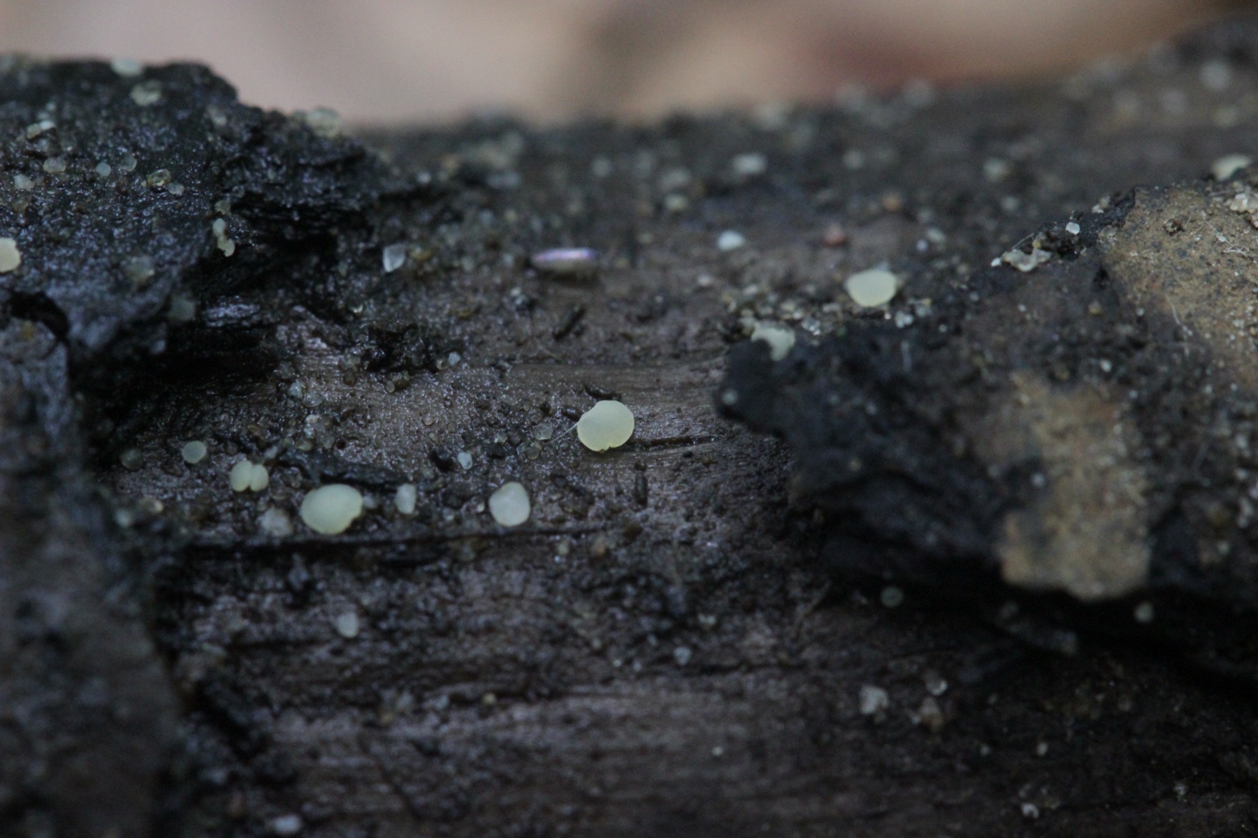 17.) Ein kleiner weißer Knubbel, gefunden auf dem selben Ast wie der obige Schleimpilz. Der Ast befand sich halb in einem kleinen Bach.