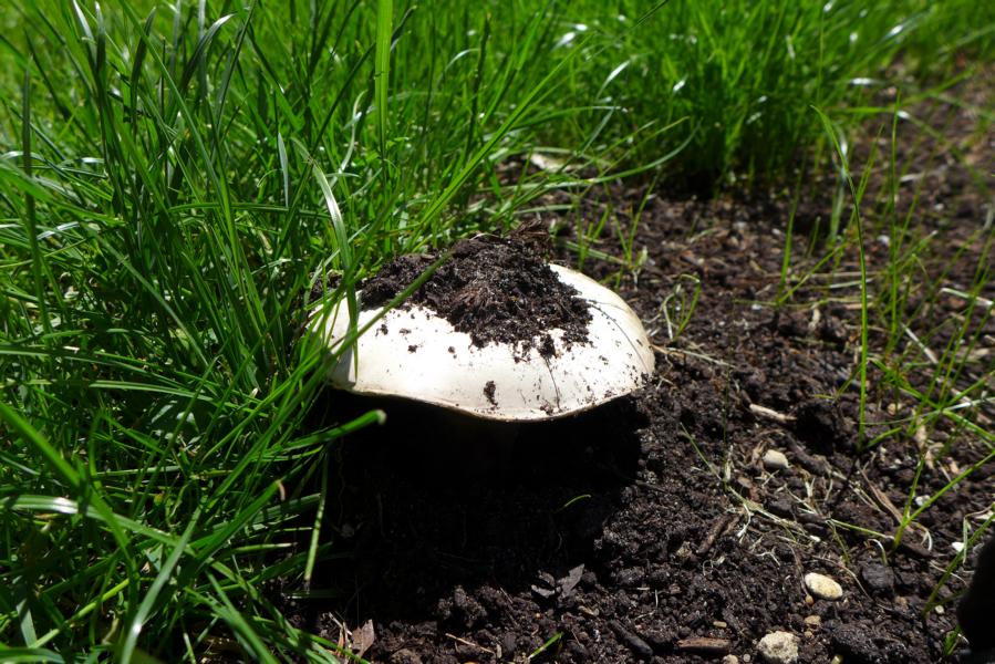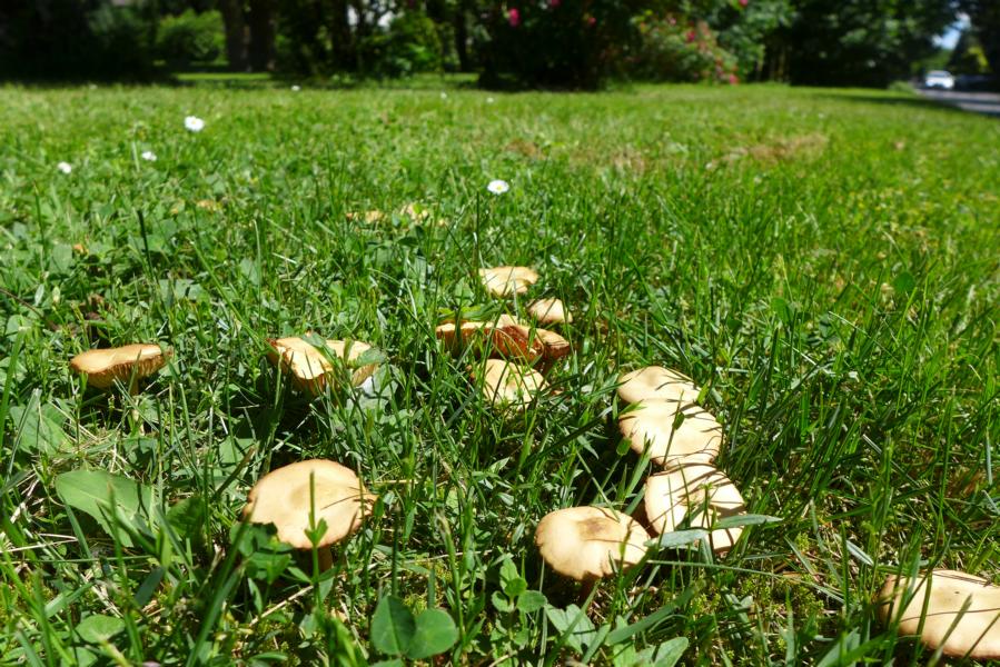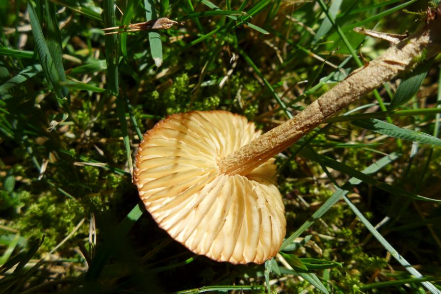 5. Hier bin ich mir nicht ganz sicher, könnten aber durchaus vertrocknete Nelkenschwindlinge (Marasmius oreades) gewesen sein