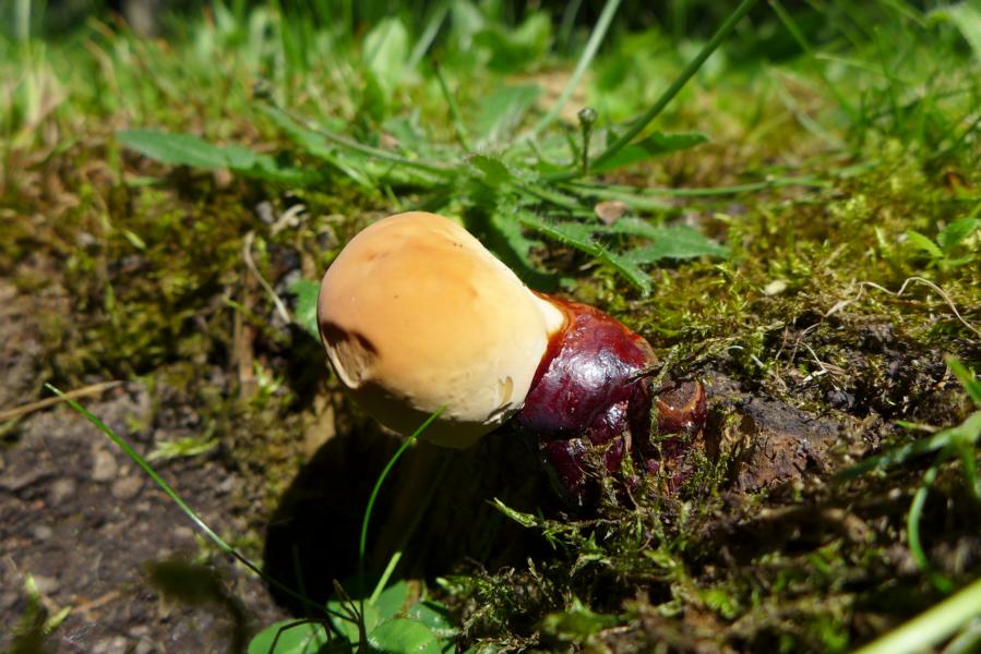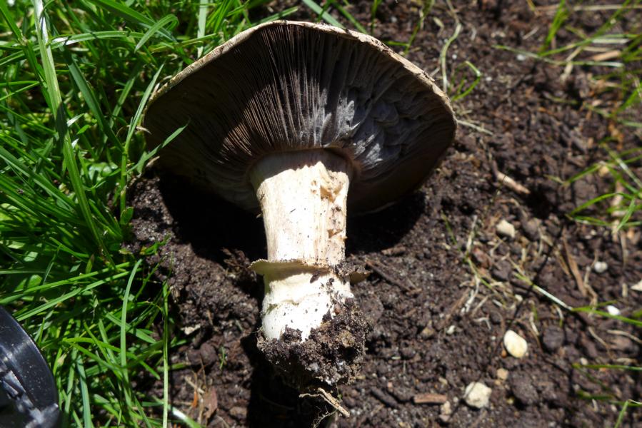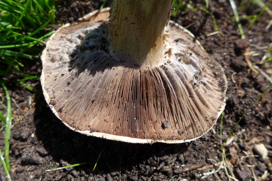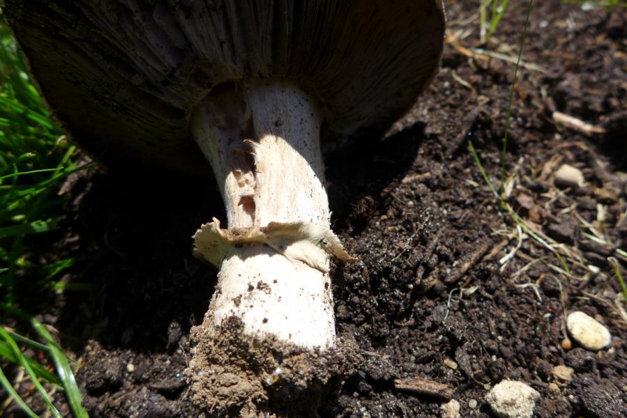 1. Los ging es mit einem nicht näher bestimmten Champignon. Der war schon ziemlich fertig und etwas angeschimmelt. Sehr kräftig gebaut, tief hängender Ring.
